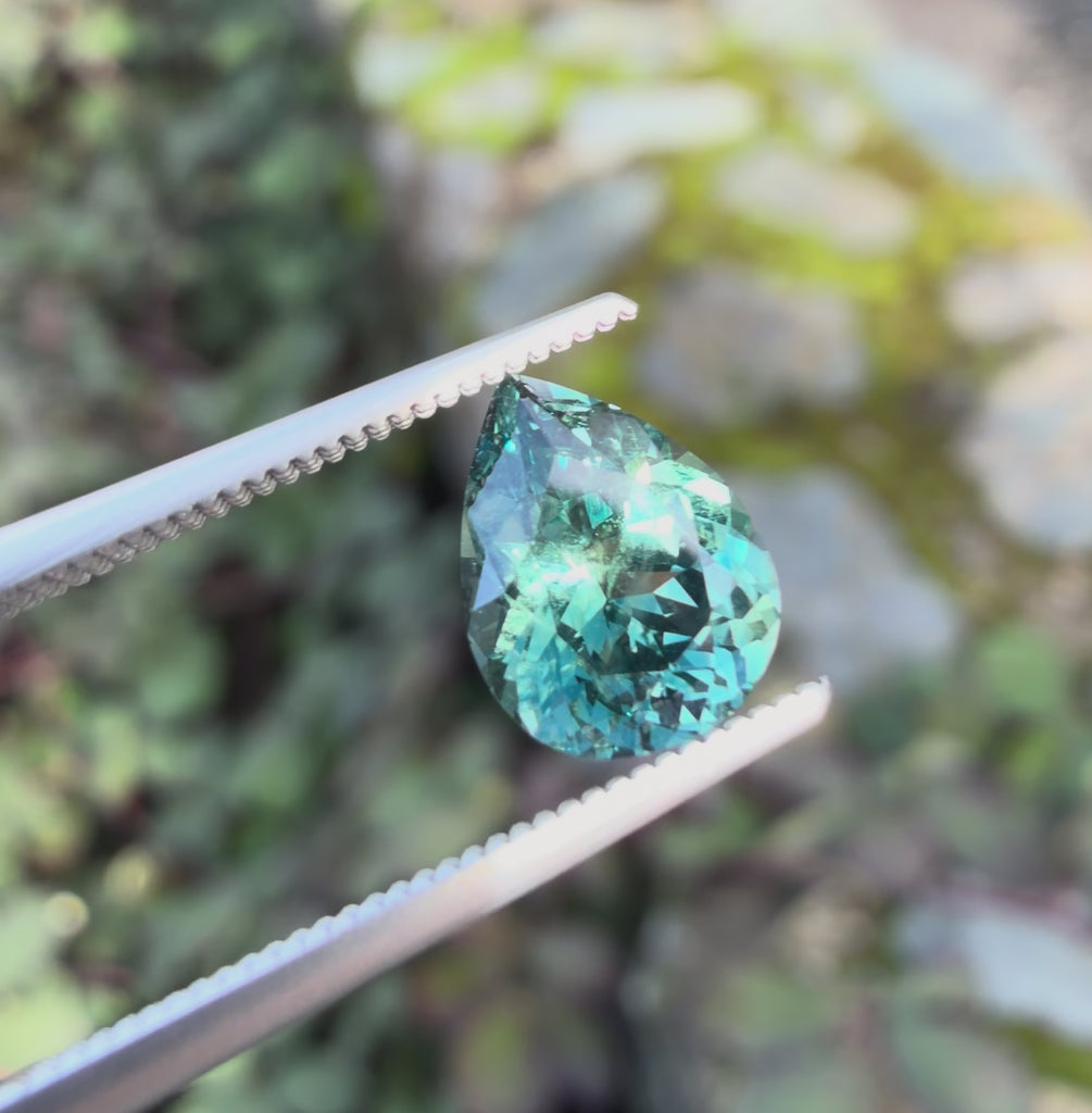 1.69ct Light Blue Aqua Opalescent Pear Montana Sapphire