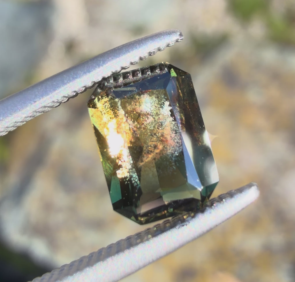 1.28ct Green Yellow Bi-Color Rectangular Sheen Sapphire