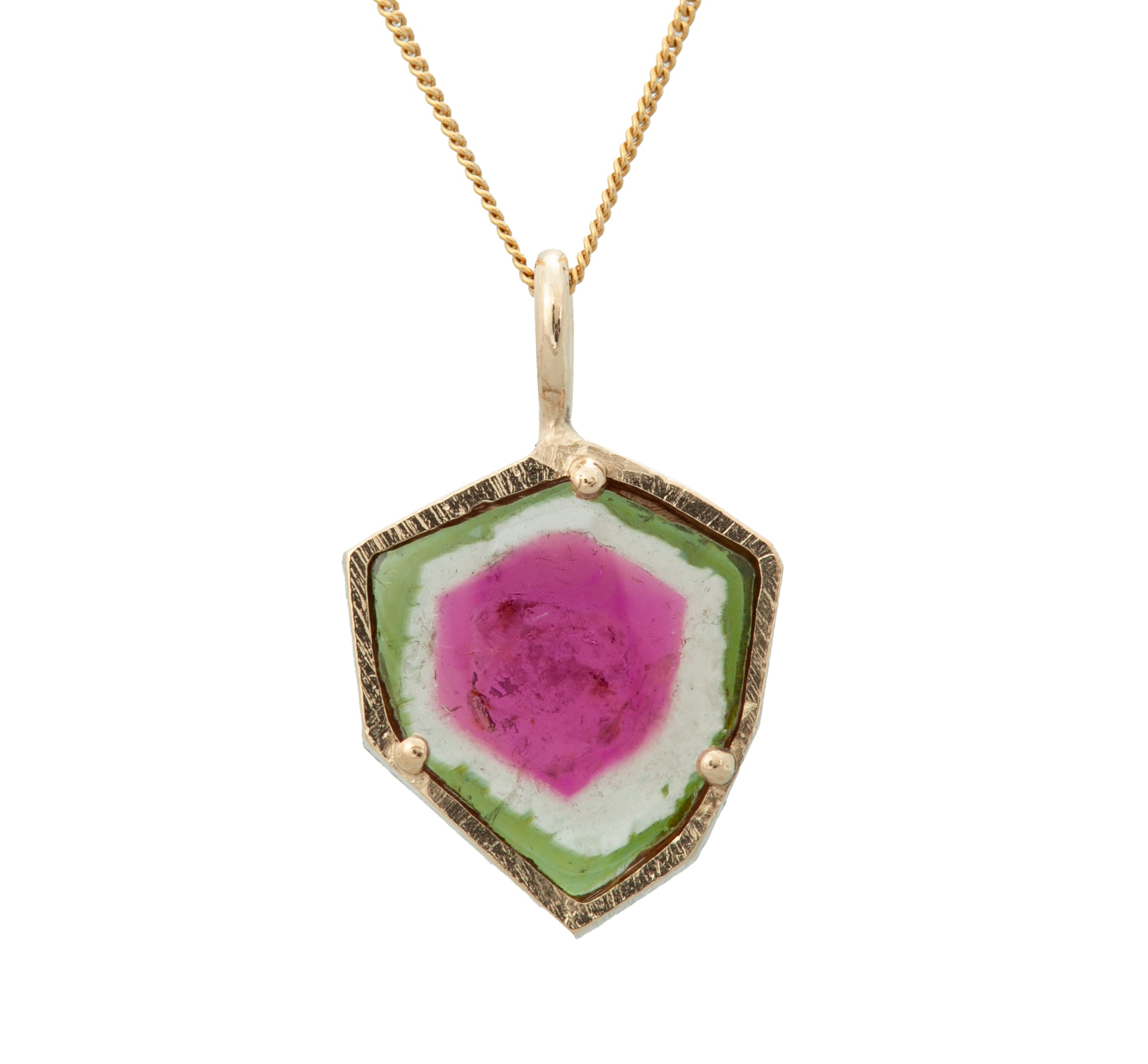 4.56ct Watermelon Tourmaline Slice Pendant 14K Yellow Gold