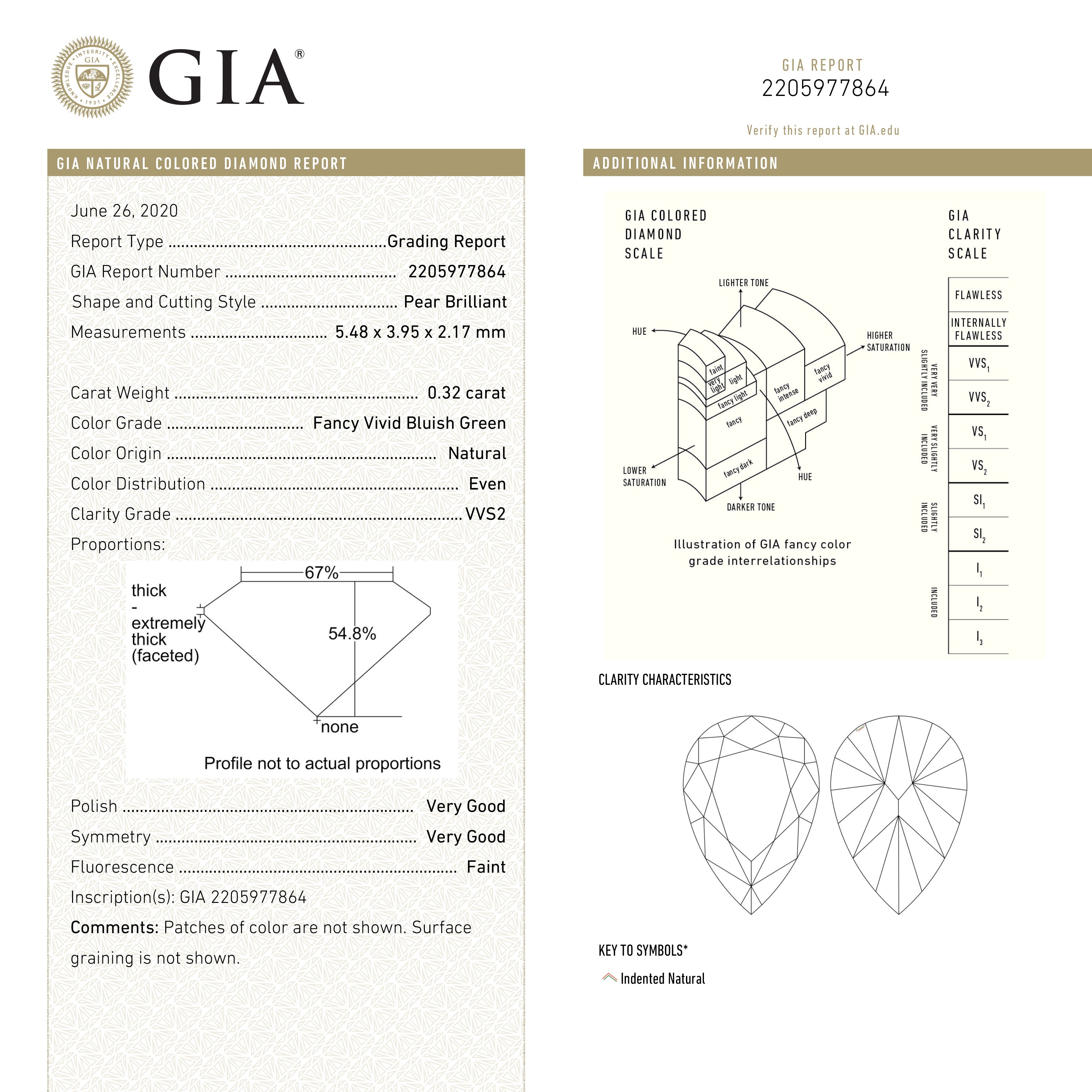 GIA Fancy Vivid Bluish Green Pear Brilliant