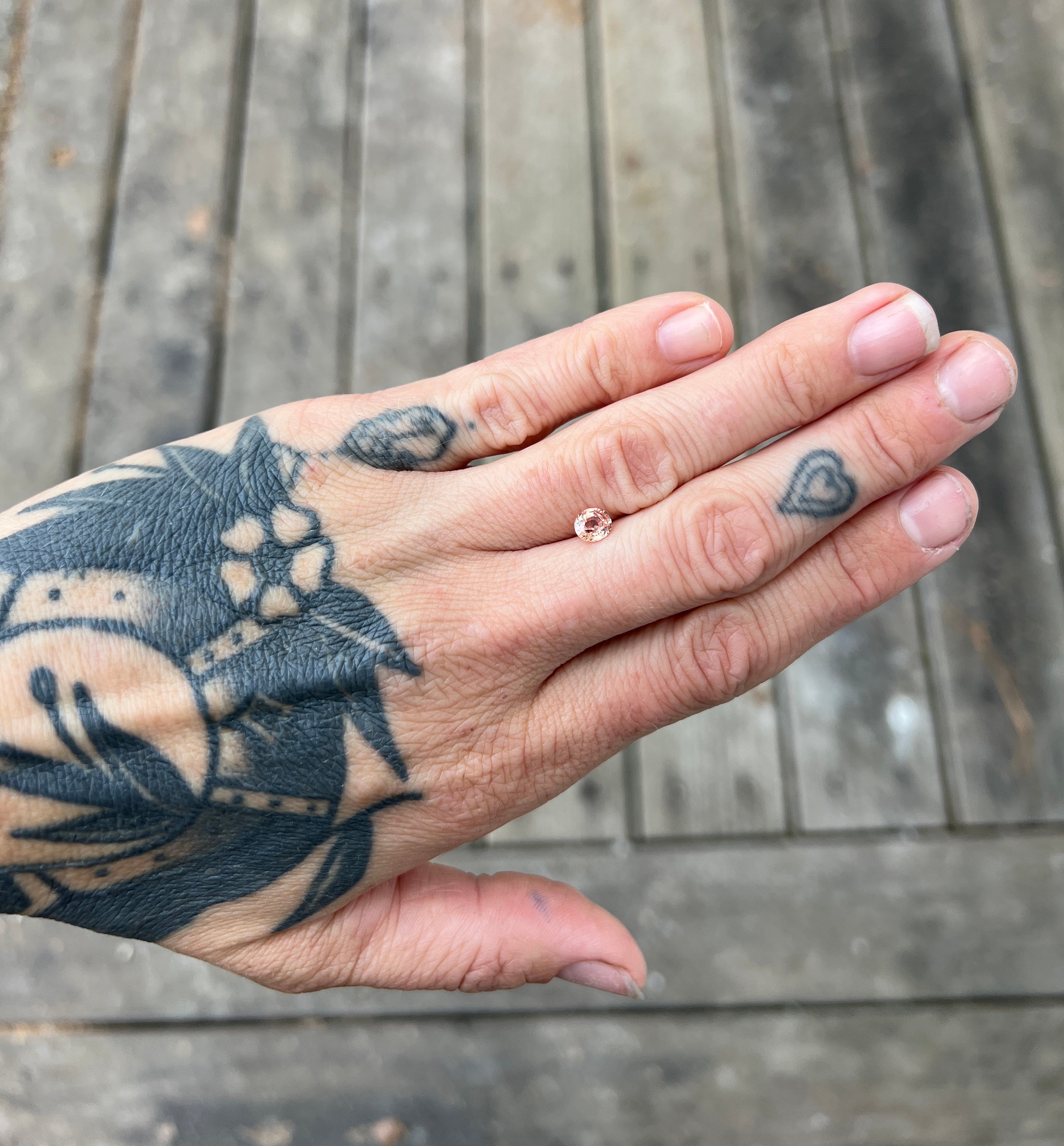 Small but powerful light bright peach sapphire. This oval-shaped stone is natural/unheated. The picture appears a little dark but the stone is vibrant.