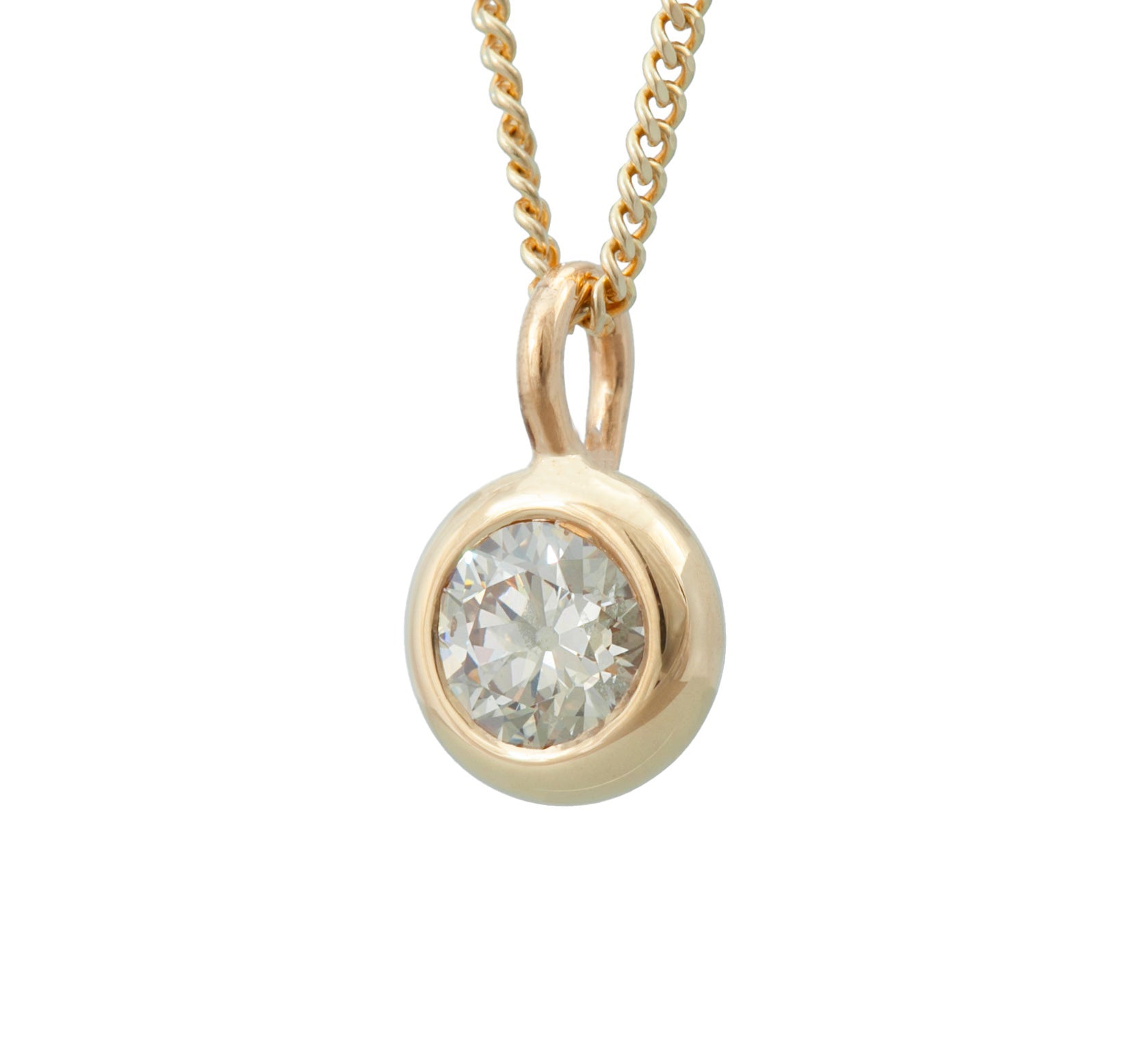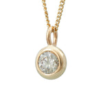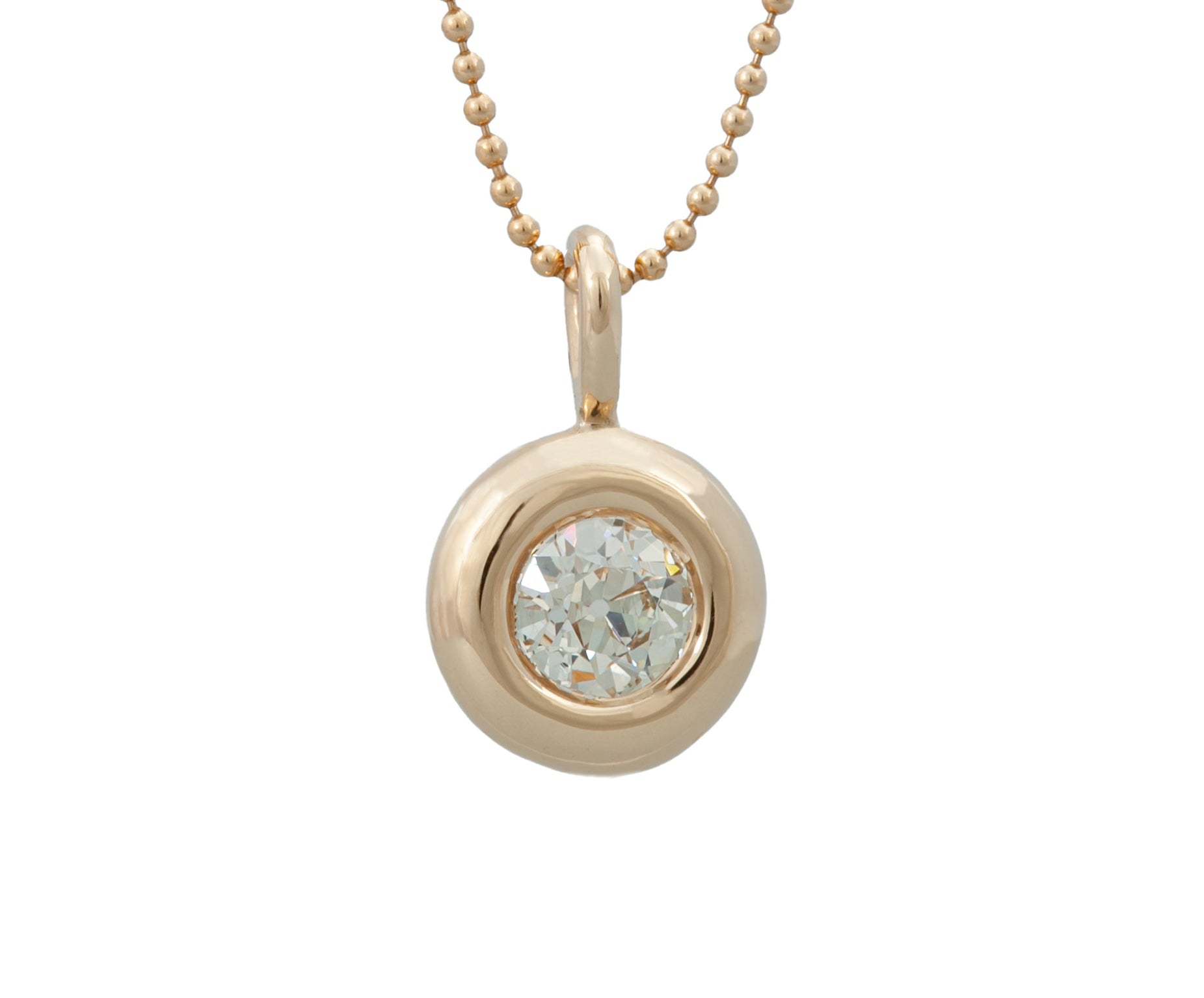 A timeless treat for all occasions. This 0.80ct antique Old European Cut greyish-white diamond is set into a 14k yellow gold pendant. Beautiful for layering or worn alone as the star of the show.