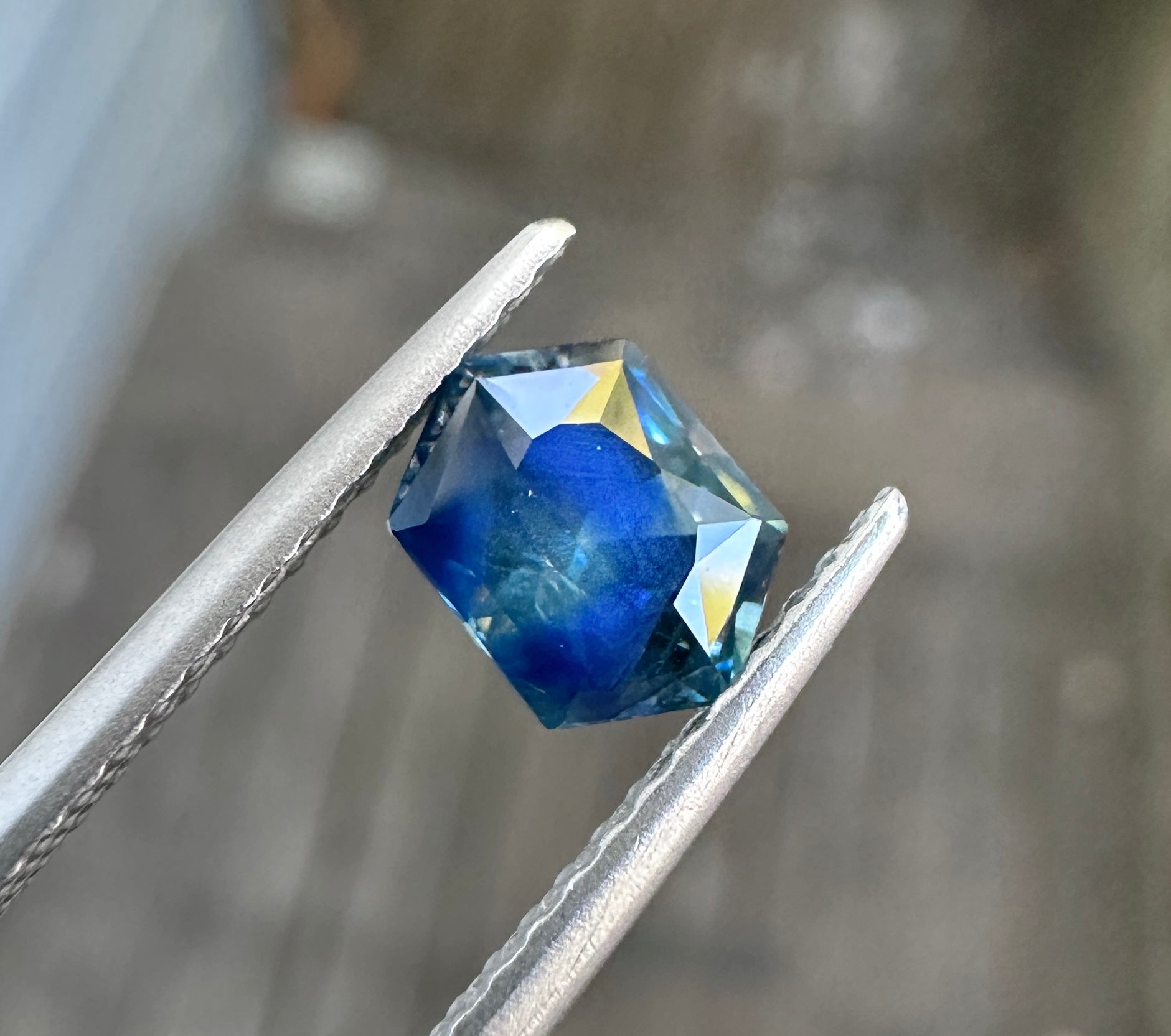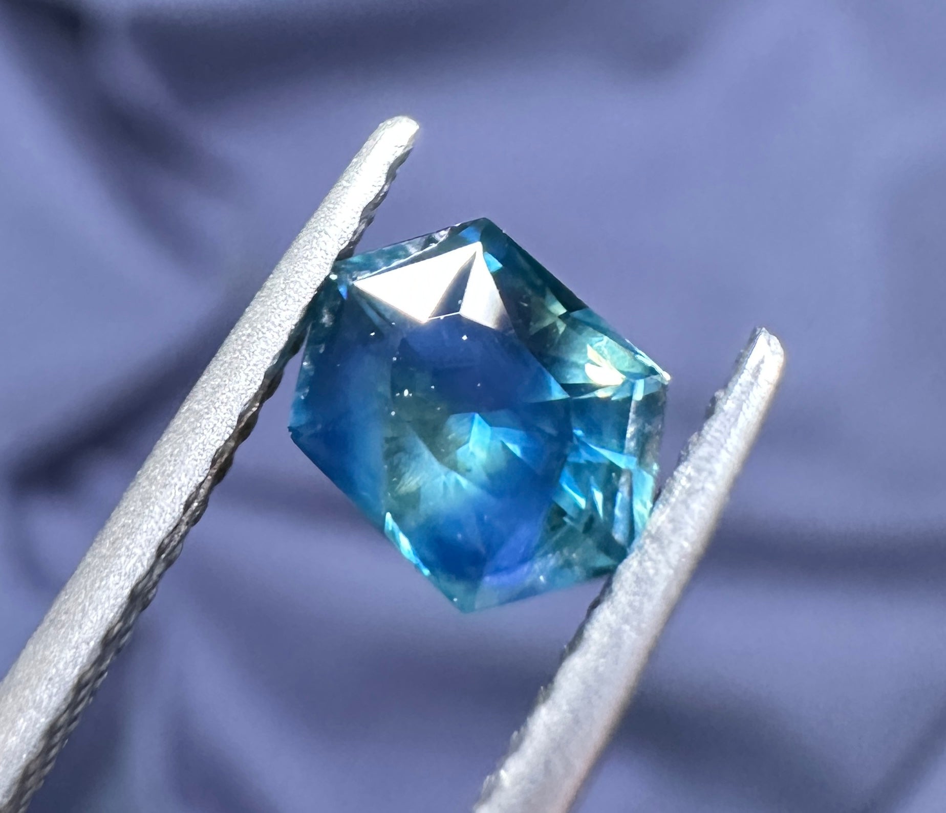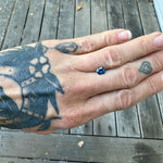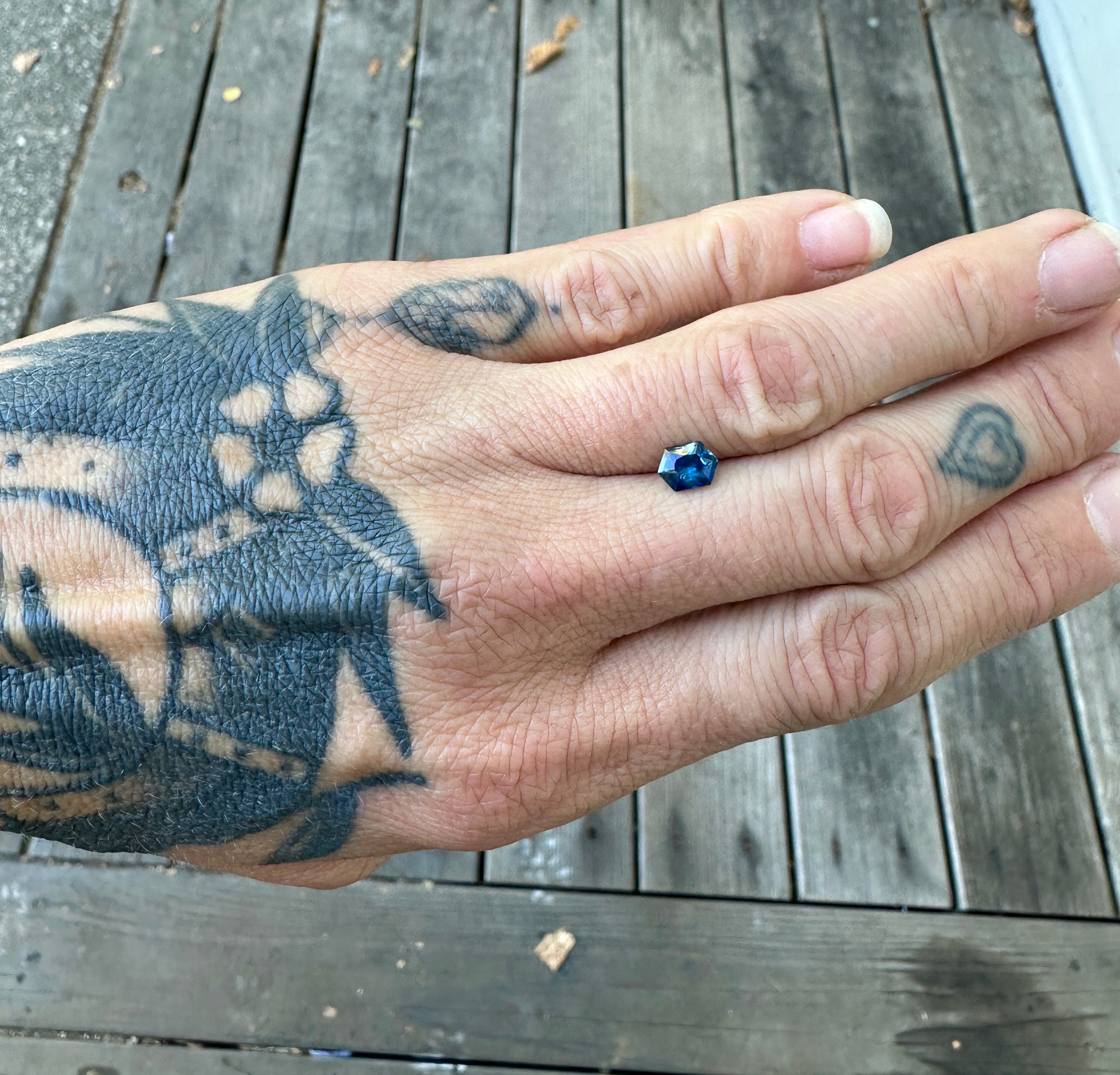 This sneaky stone has been hiding from me. Until I shot these videos, I truly had no idea the magic within. The most perfect silky blue with an internal triangular zone. It's almost opalescent seeming. Whatever its doing, it's glowing, its bright blue and I'm in love. This stone measures 6.81mm x 5.03mm and is heated. It is from Rock Creek, Montana.