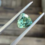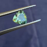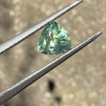 This unique aqua and green parti trillion sapphire is from Rock Creek, Montana. The stone has been heat-treated for color and clarity, and measures 6.17mm x 4.15mm.