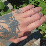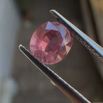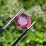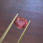 1.27ct reddish magenta peach oval sapphire with color flash. This stone is natural and has not been heated. We've included an indoor video to display what it looks like in incandescent light.