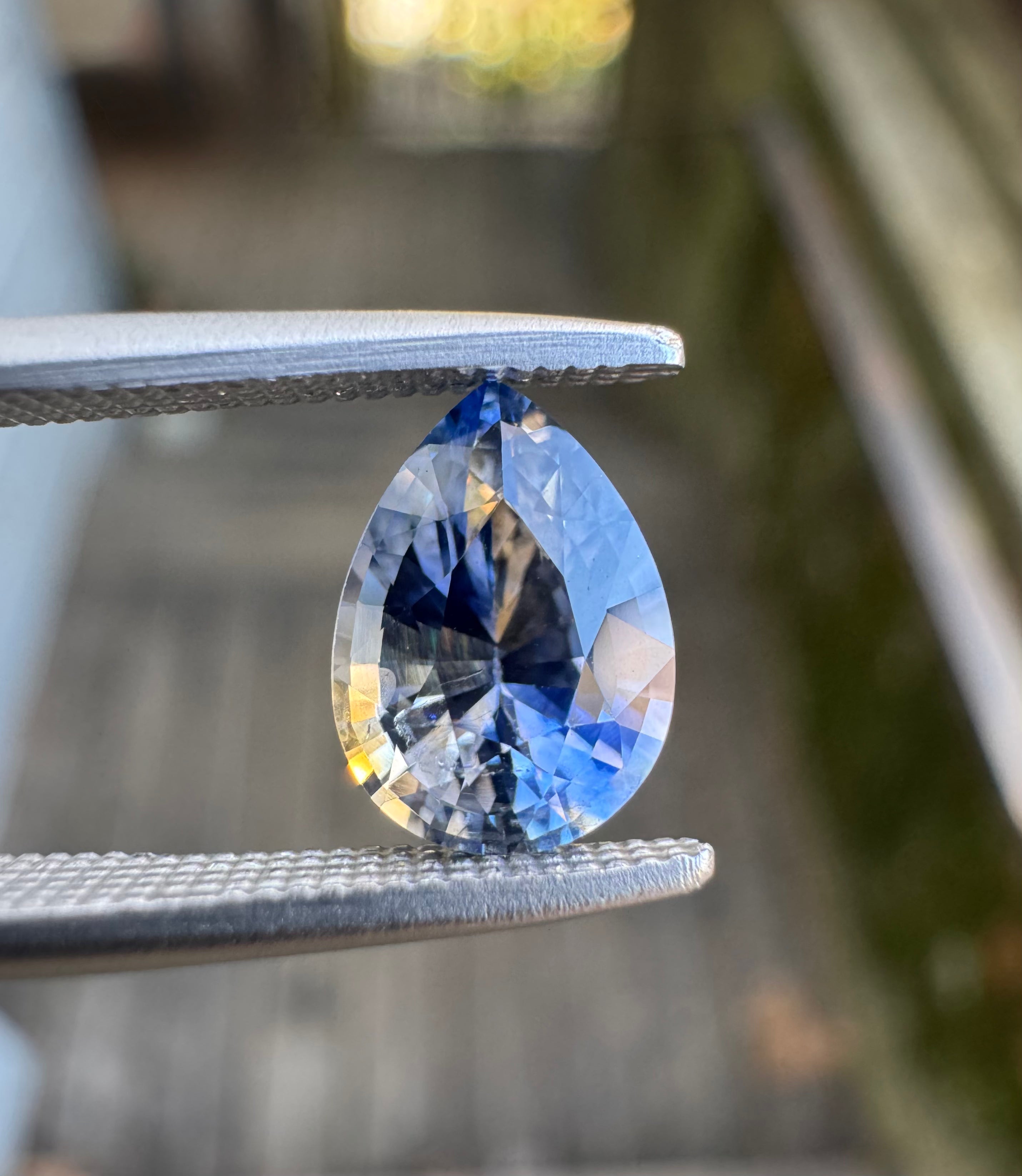 1.33ct parti sapphire showing blue, grey, and yellow. This is a really nice stone, and it has not been heated.