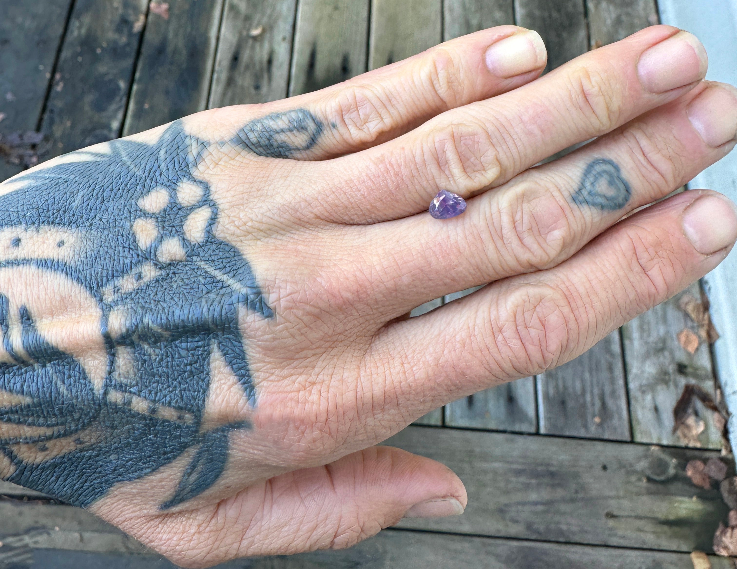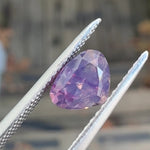 This uniquely cut sapphire is unheated from Kashmir, Pakistan. It has purple, pink tons with darker pink zoning in the stone. This stone measures 7.00 x 5.44mm