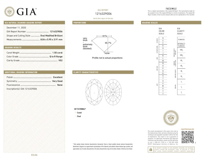 Color: Q-R, Clarity: VS2, GIA Certification: 1216329006