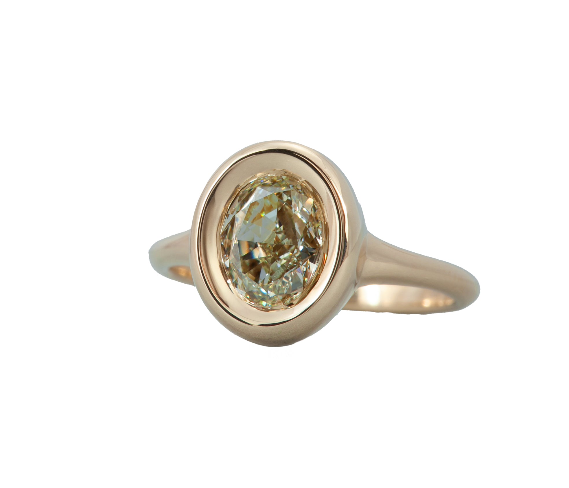 1.50ct Oval Diamond Bezel Set Ring 14K Yellow Gold
