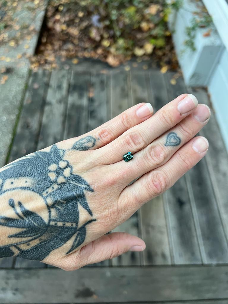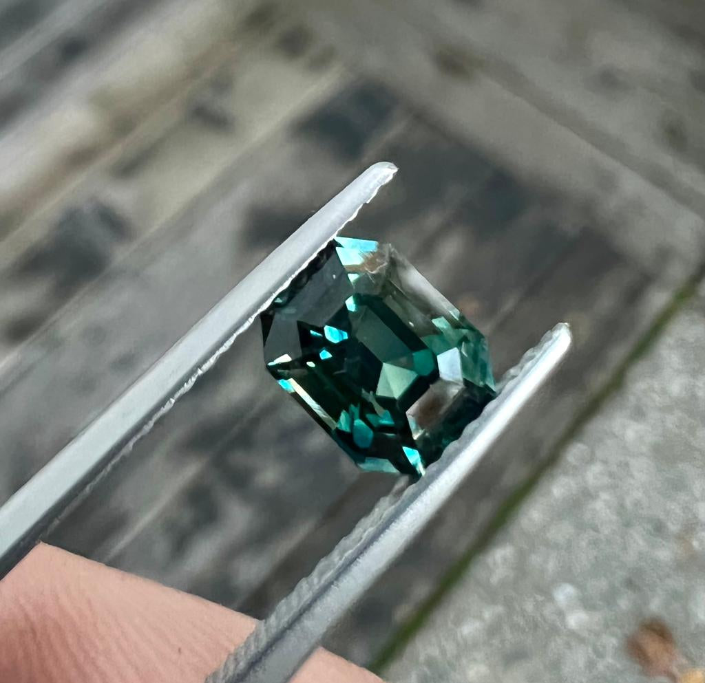 1.59ct Modified Rectangle Cut Parti Sapphire. Great parti sapphire with mixing colors.