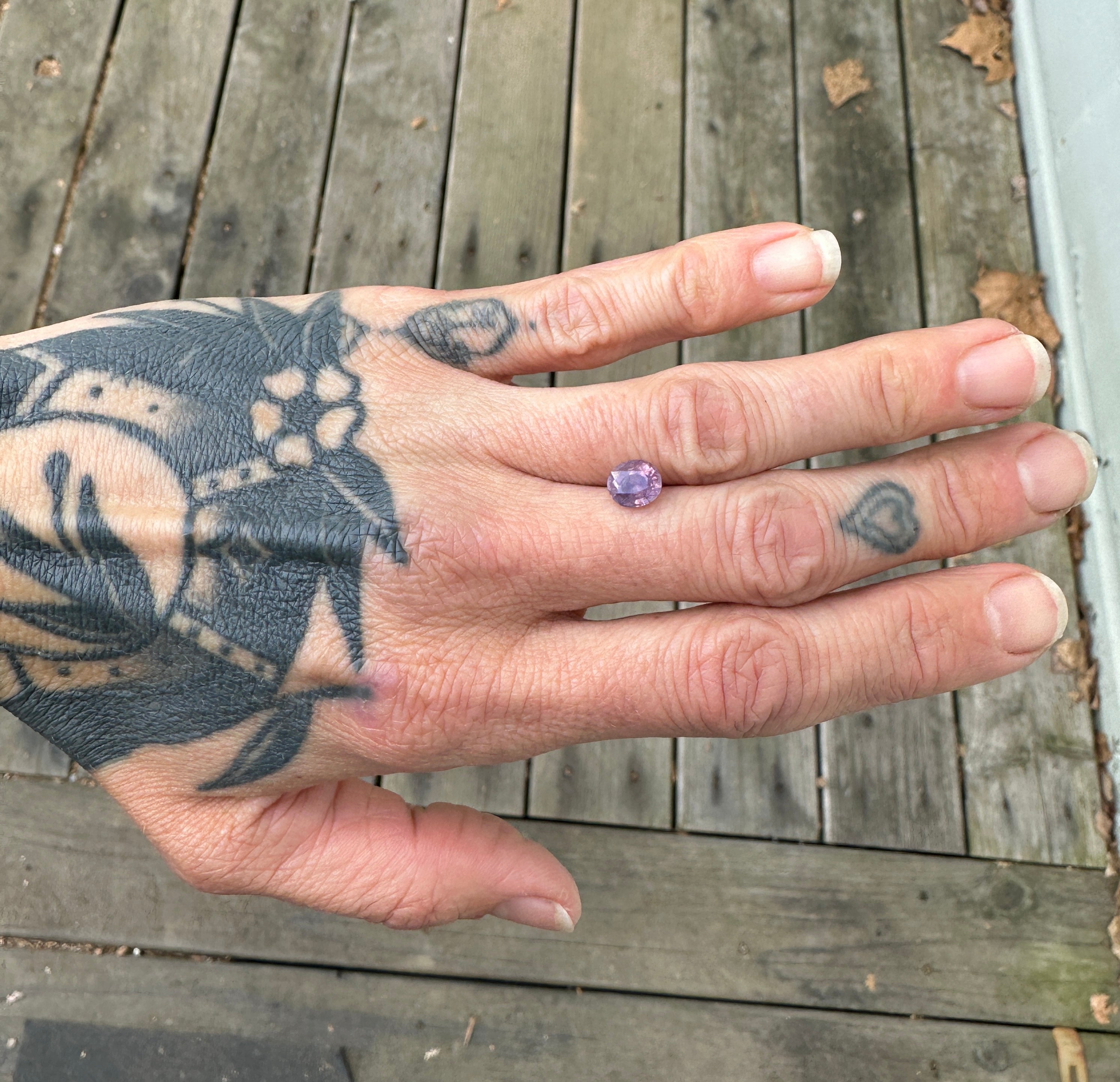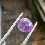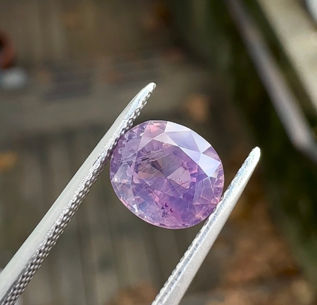 These Kashmiri sapphires display hints of opalescence and are the most interesting colors of purple, maybe pink and even a little smokiness to it. It measures 7.35 x 6.35mm and is unheated.
