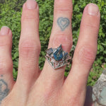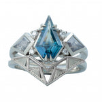 OOAK 14k White Gold set, 7x4mm Light grey rose cut kite diamonds with a unique elongated kite shaped sapphire center weighing 1.98ct set with double claw prongs. 4 round brilliant diamonds accent the kites. This ring may be purchased with or without the matching band. Price below in the drop down menu.