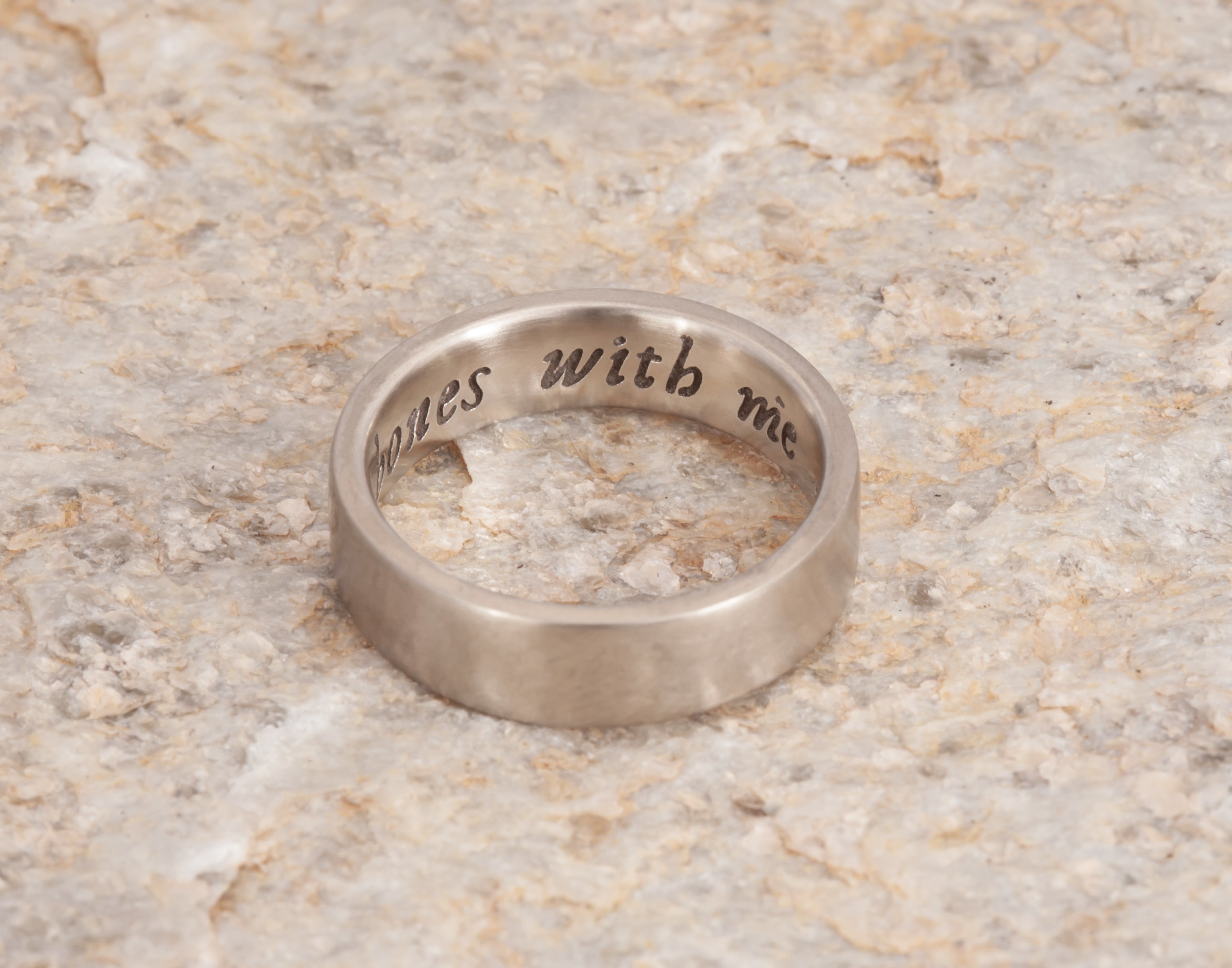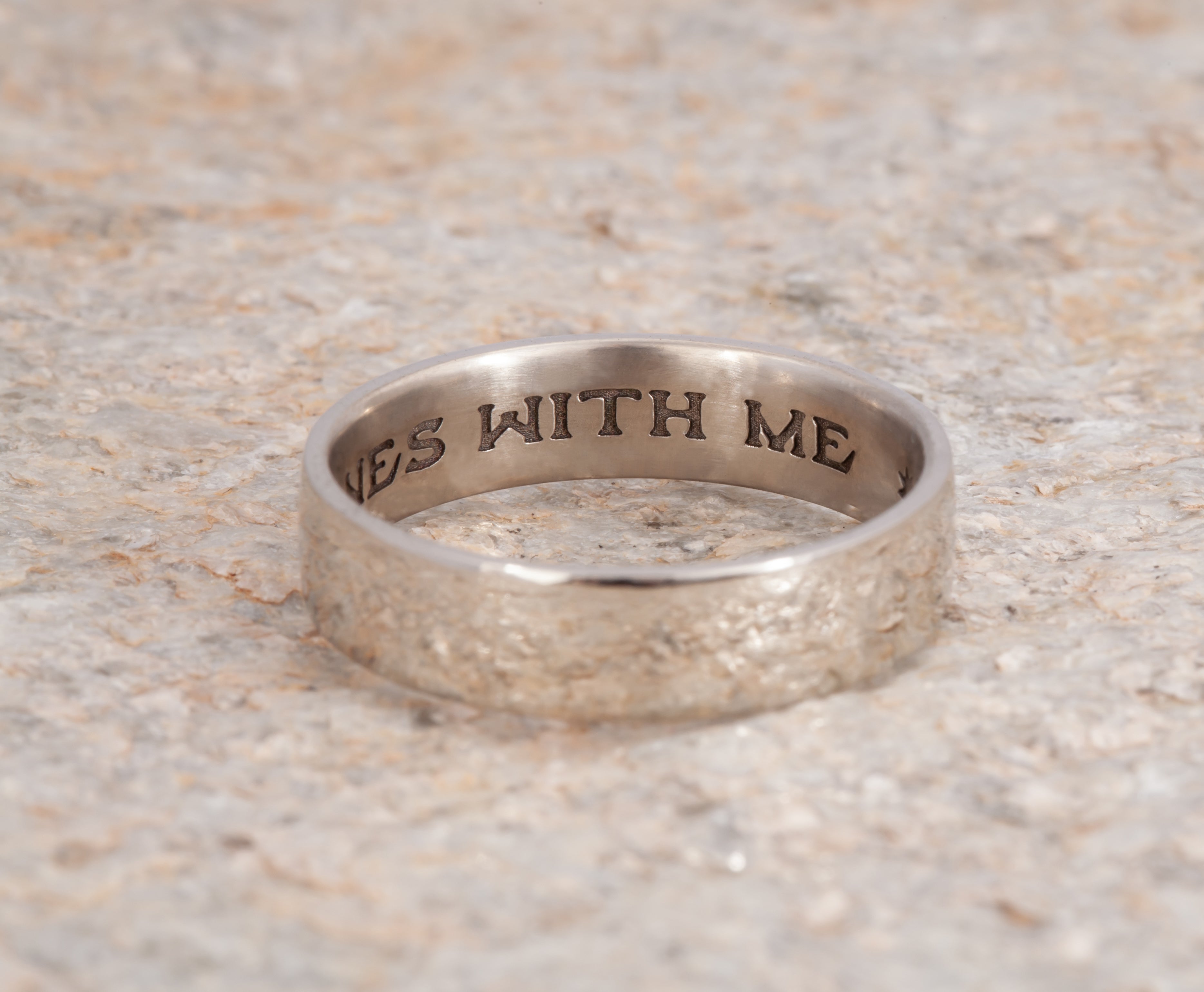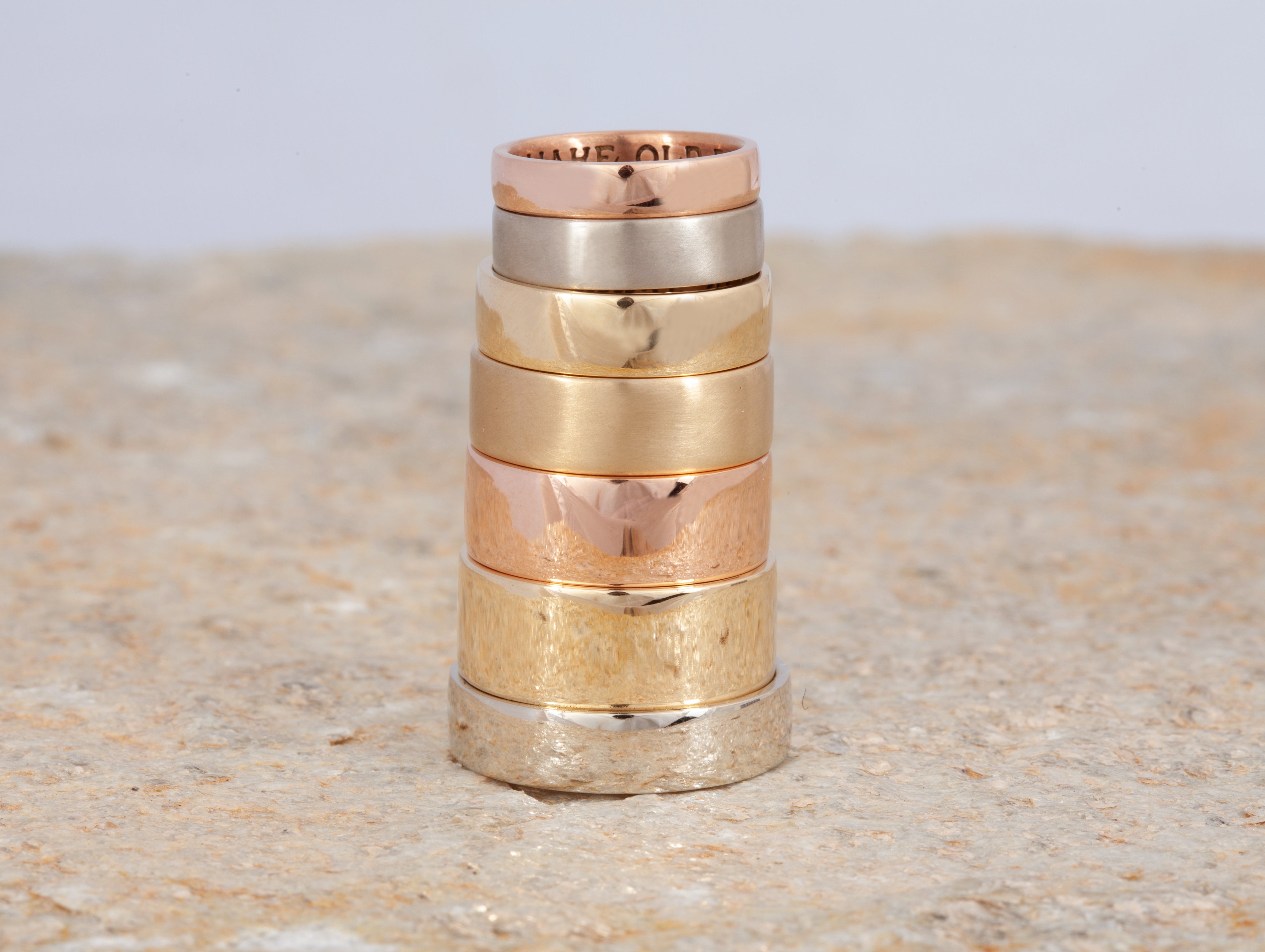 Our signature Make Old Bones band can be made with a brushed finish, a satin sandblasted finish, or a high polish.