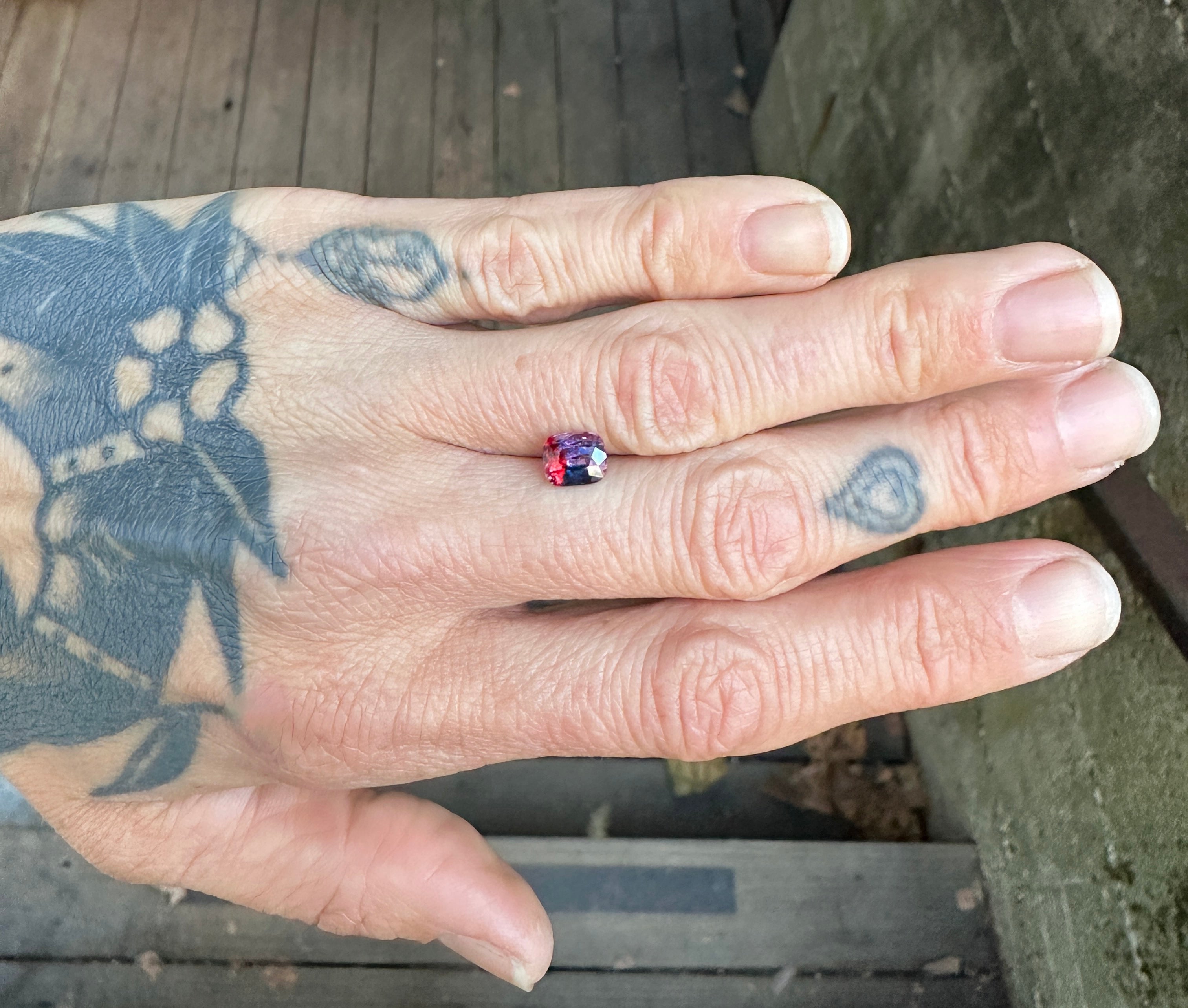 This is a parti sapphire if I ever saw one. This stunning sapphire has distinctive red, blue and pink/purple zoning mixing together throughout the zone to create a psychedelic head turner. Please watch the videos.
