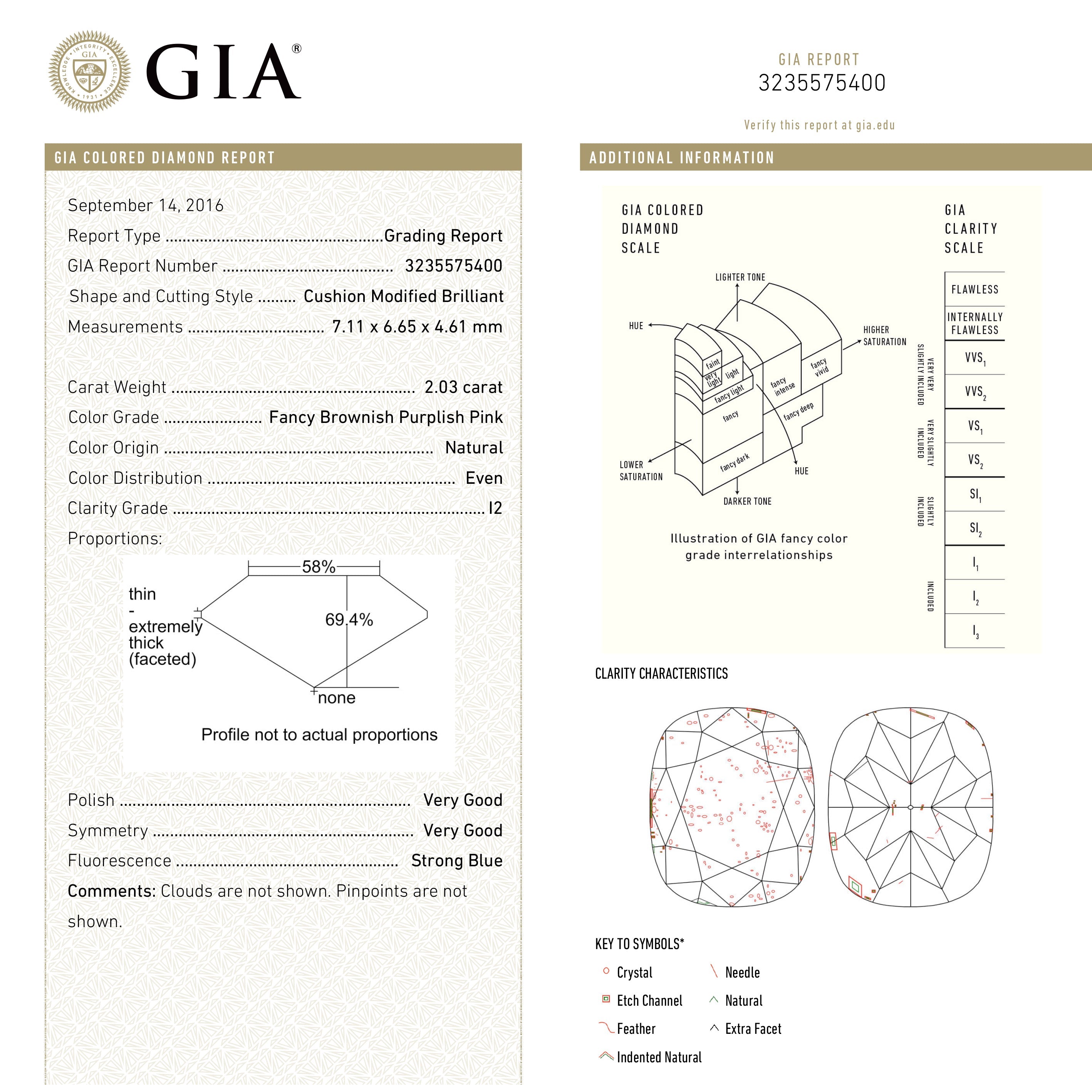GIA Fancy Brownish Purplish Pink Cushion Brilliant