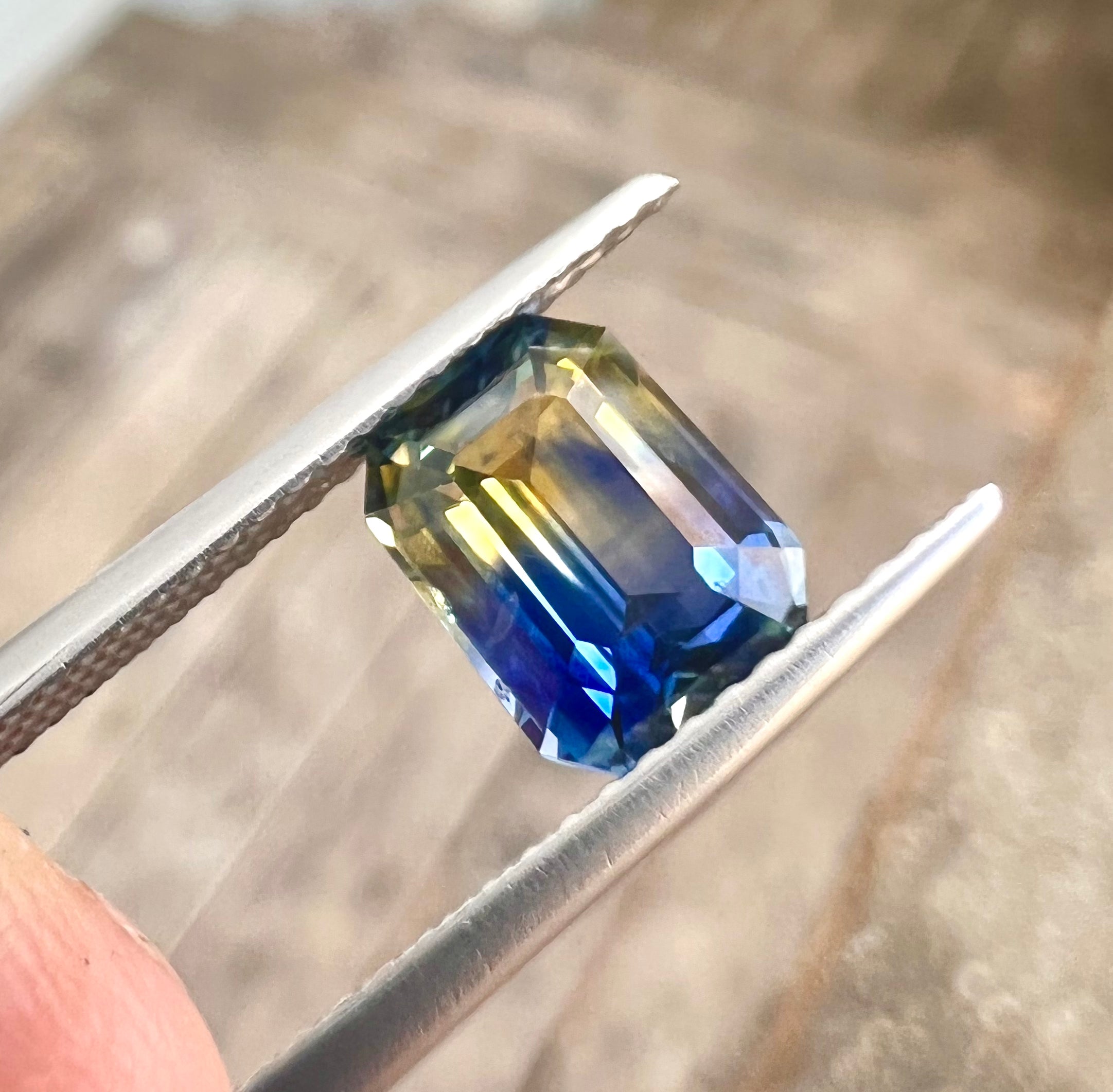 An exceptional vivid Yellow-Blue parti-Sapphire. This stone is heated.