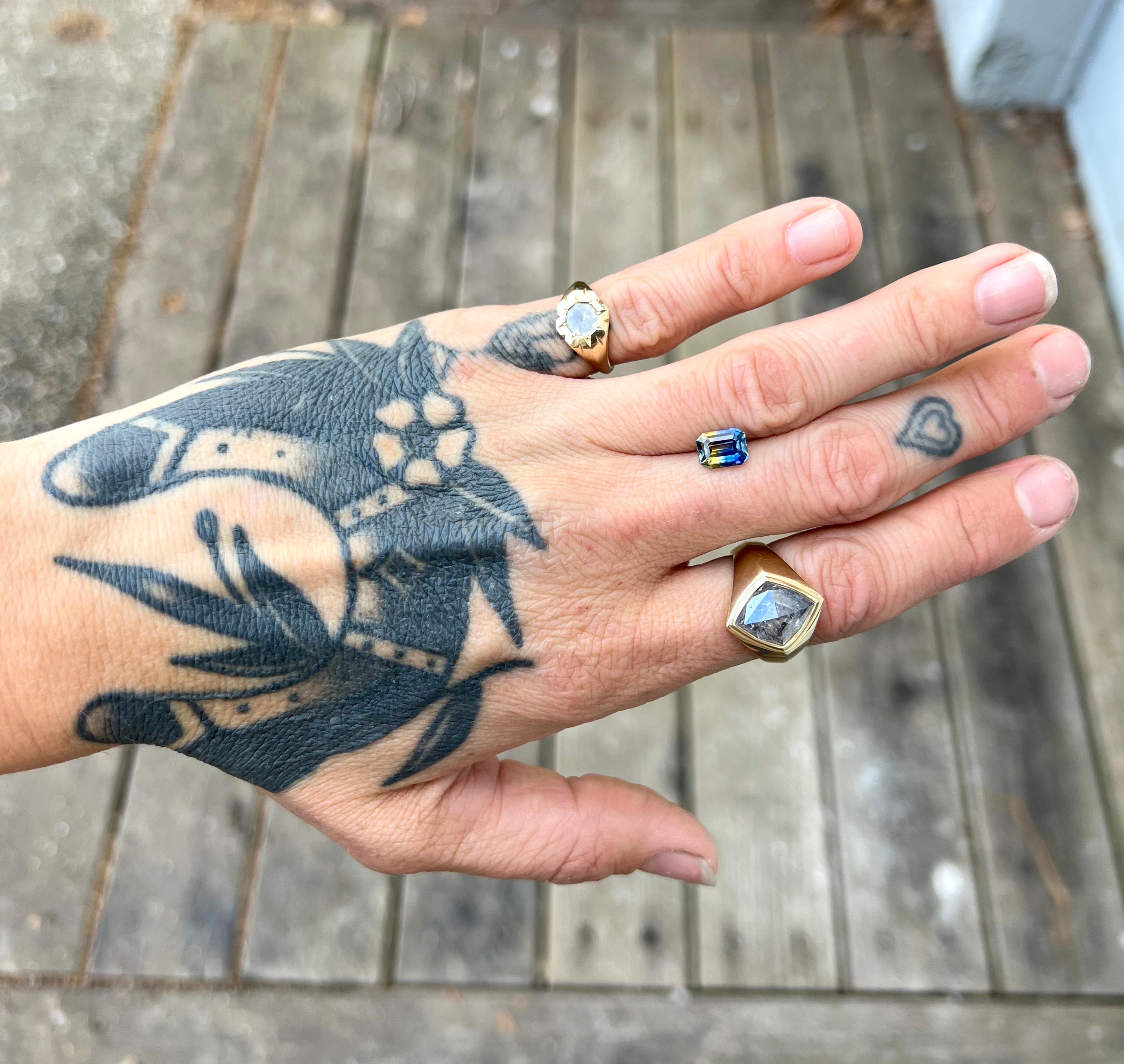 We specialize in customizing our jewelry so each piece is unique. Sarah sources and cuts a collection of beautiful stones, which can be combined with our ring settings to create a one of a kind piece. Start by browsing our loose stone library. Once you find something you like, you can purchase the stone and setting and we will reach out to begin the design process. We’ll walk you through it!