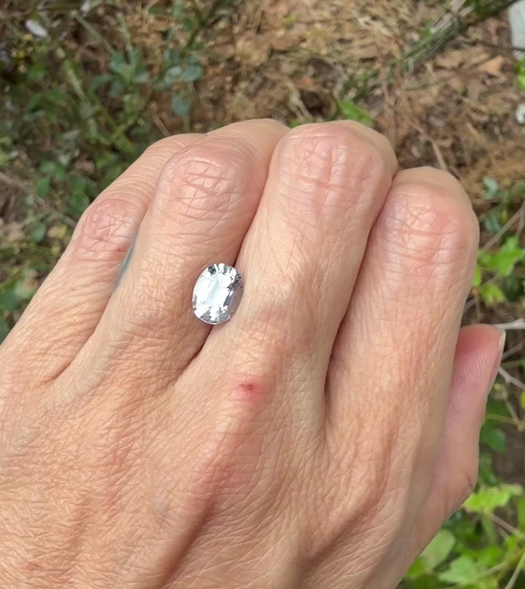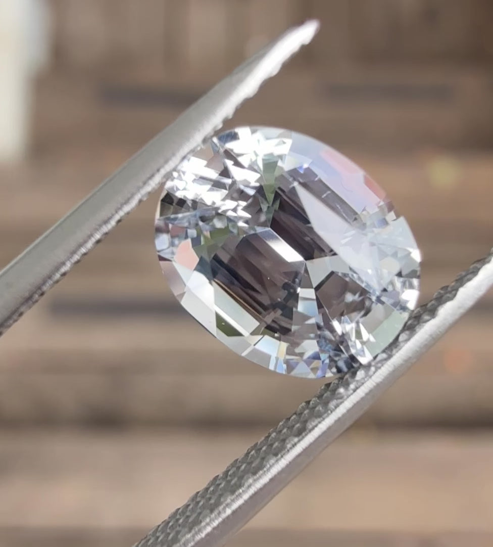2.11ct grey oval sapphire. This stunning really sparkles in the light. The stone measures 8.40mm x 6.29mm x 5.25mm.