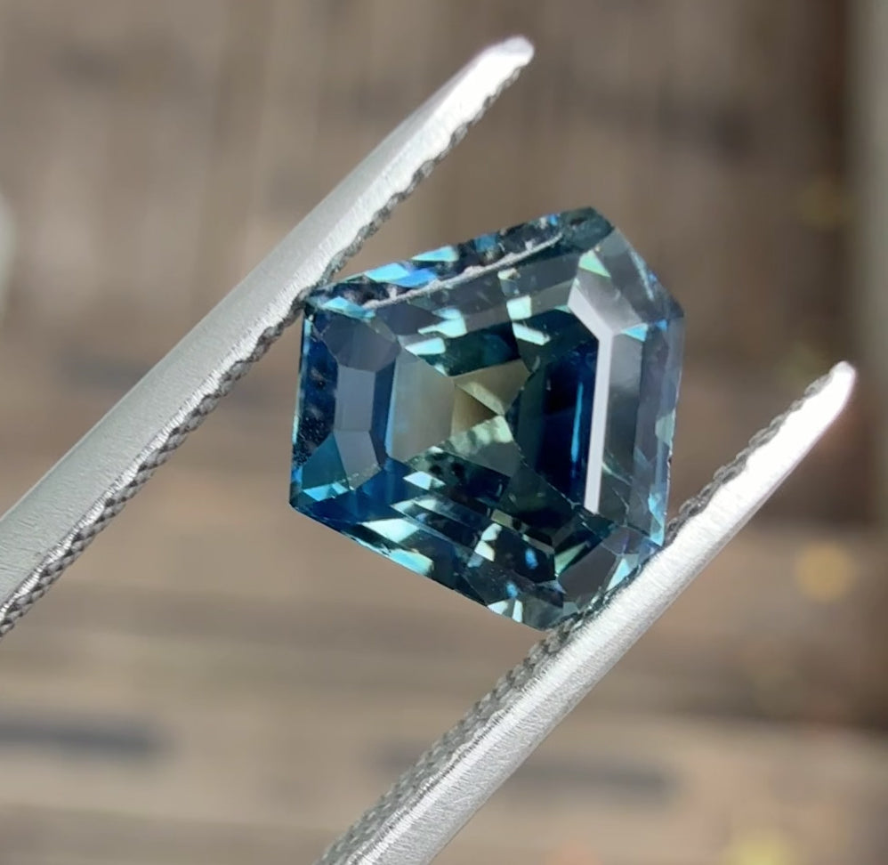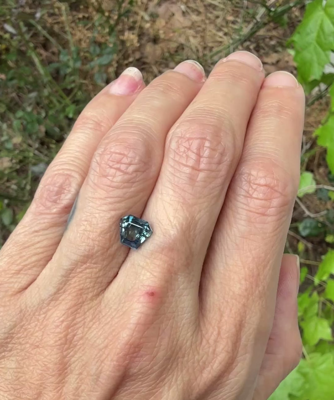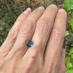 2.12ct brilliant blue shield sapphire. This stone is natural or unheated, and measures 7.30mm x 6.69mm x 5.09mm.