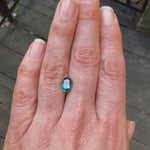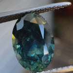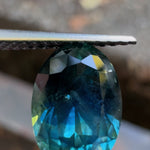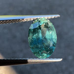 2.35ct teal oval sapphire with silk inclusions. This stone is from Rock Creek, Montana, as has been heated.