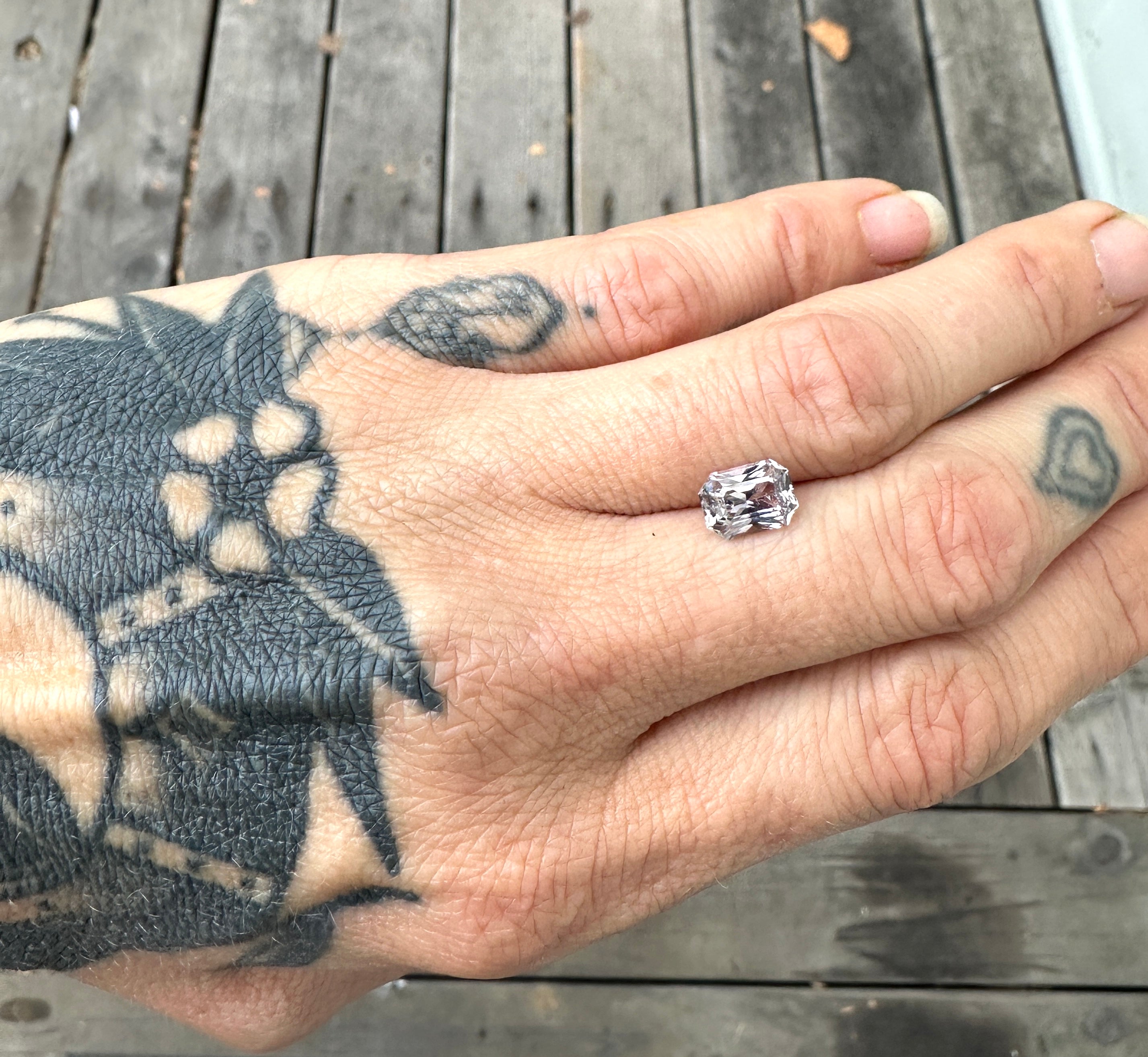 It is difficult to describe the color of this stone. It may be Sarah's personal favorite color of sapphire, it's technically a light brown but we would say it is more of a mauve type color. Please make sure to watch the video of this stone.