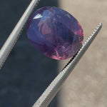 This stone has an opalescence to it which enhances its range of colors from purple to blue. We are unsure if this stone has been heat treated, so we must assume it has been.