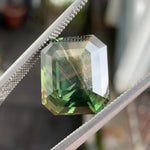 2.68ct Rectangular Australian Sapphire with golden zoning within. We are not sure if this stone has been heat treated therefore we must assume is had been.