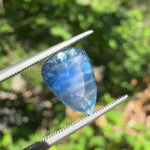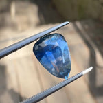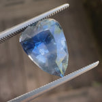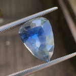 3.20ct blue grey zoned sapphire, pear like shield shape. This stone was sourced by Anza Gems, and cut by Steven Tyler. It has not been heated.