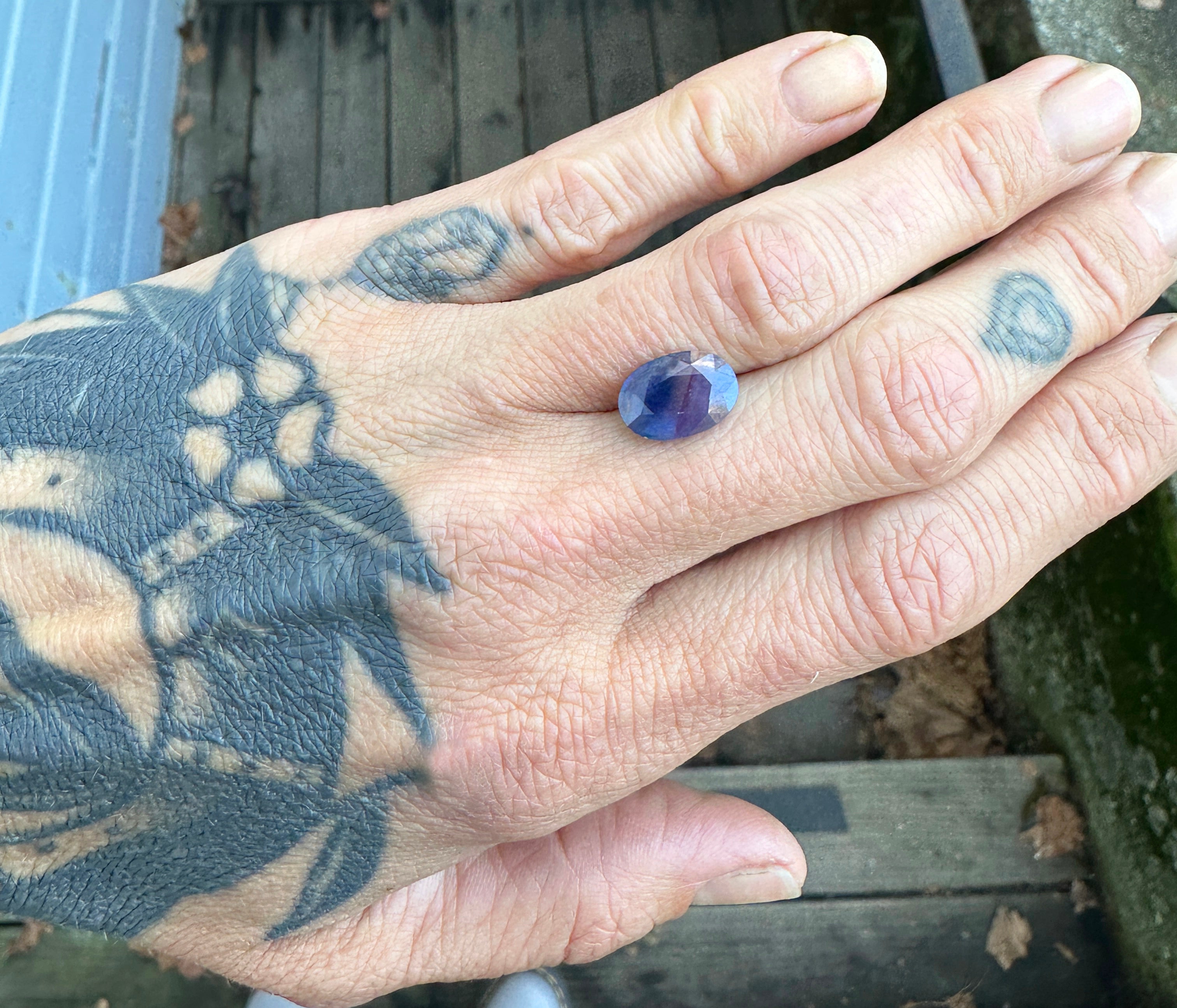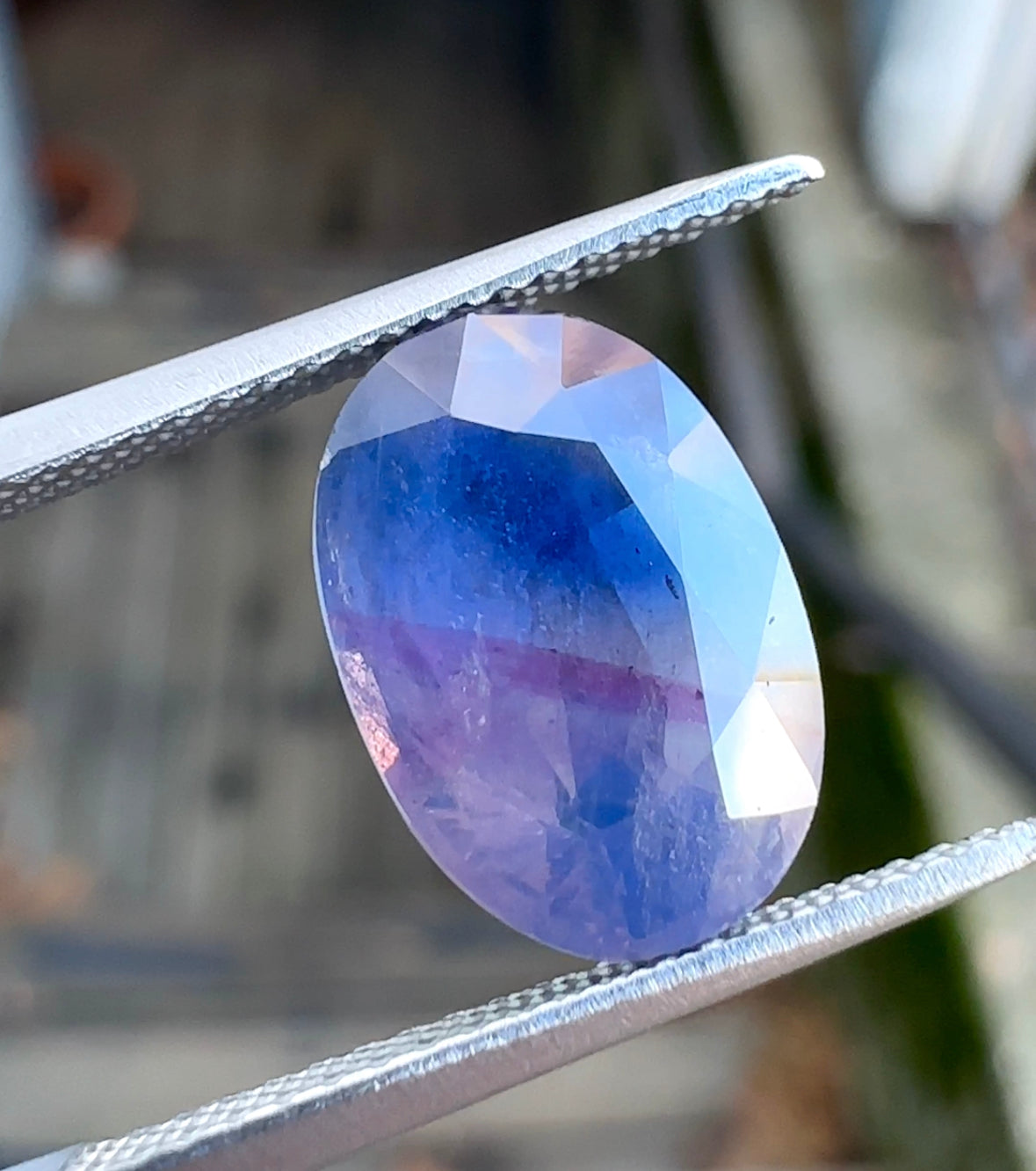 A special sapphire of Kashmir Pakistan origin. A parti color sapphire containing a unique blend of zoning and color. Unheated, measures 12 x 8.40mm.