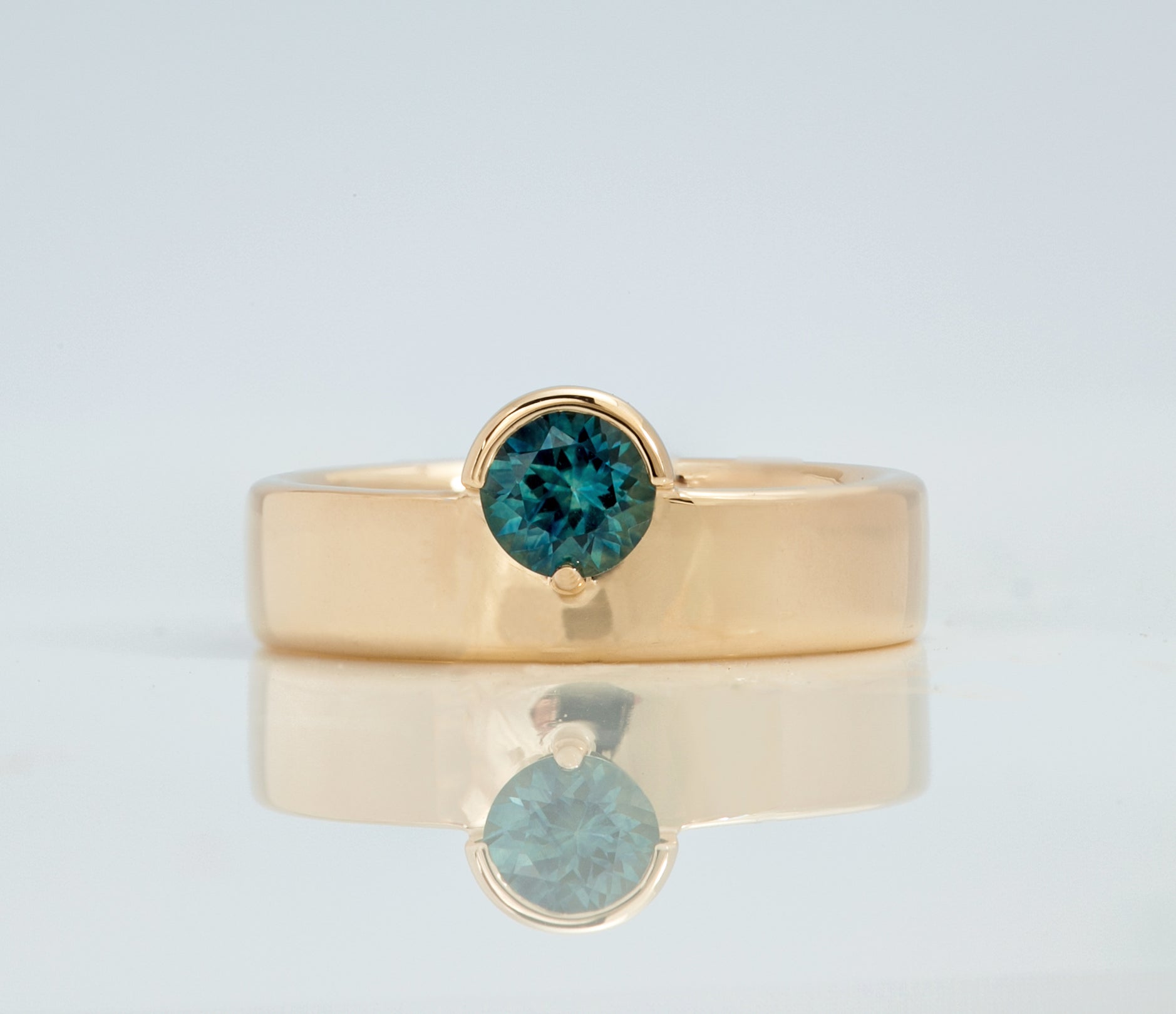Our Riley setting hosts a stone set off center. With this band there are different options for band width. The 4mm Riley Band is best with a 0.50ct stone or smaller. Most of our smaller stones are in a backs tock not listed on the website. Please contact us if you are not able to find a stone for your 4mm Riley Band.