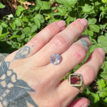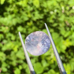 5.49ct lavender, peach, smokey grey custion sapphire. This stone is silky and slightly opalescent, featuring a lot of cool pastels. It is natural and has not been heated, cut by our friend Steven Tyler.