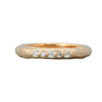 Crafted in 14k yellow gold, this textured madrone-inspired band features five round diamonds, alternating between 1.75mm and 2mm, for a subtle yet elegant sparkle. Its organic design, inspired by the beauty of our local madrone tree, makes it perfect for stacking or wearing solo as a statement piece.