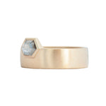 Our Riley setting hosts a stone set off center. With this band there are different options for band width. The 6mm band is best for stone 0.80ct-1.50ct.