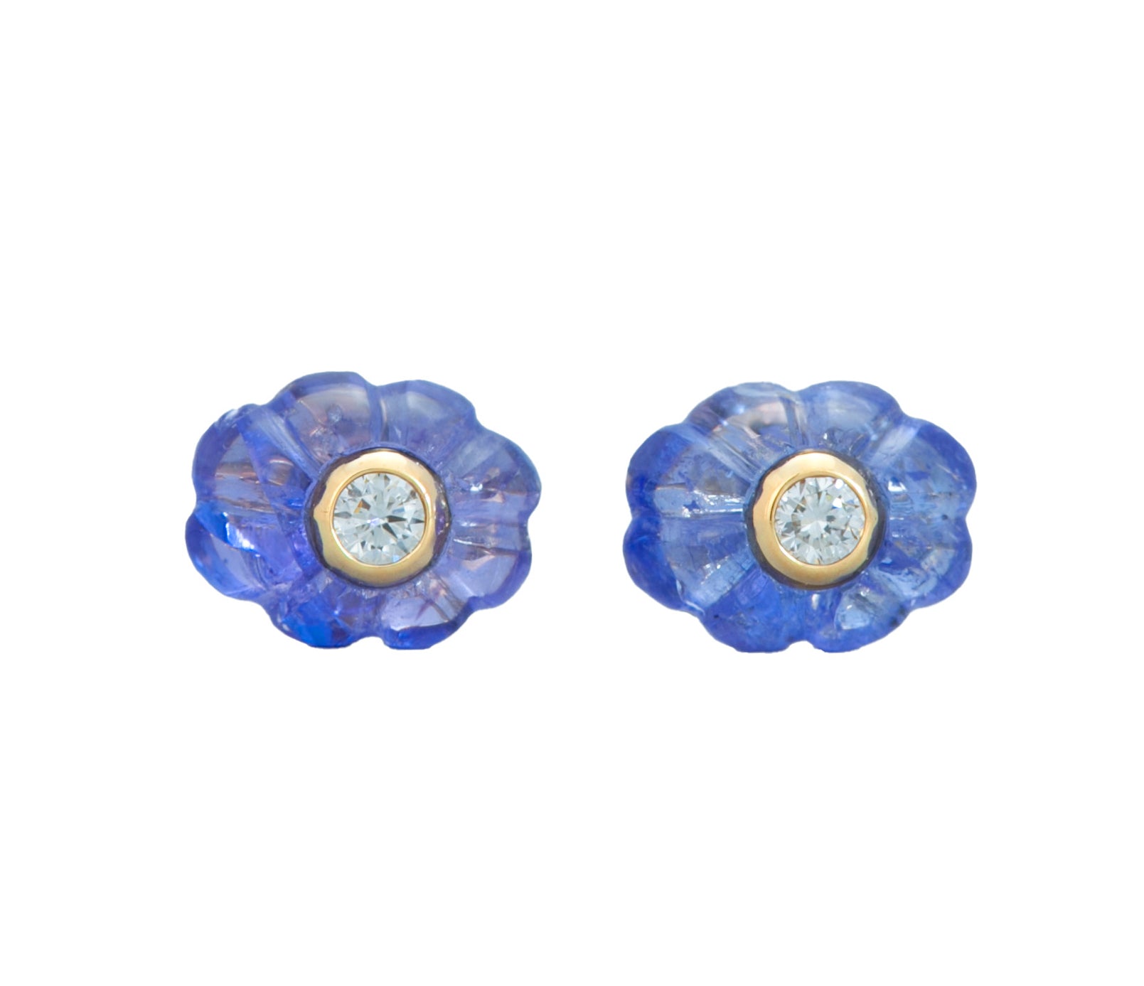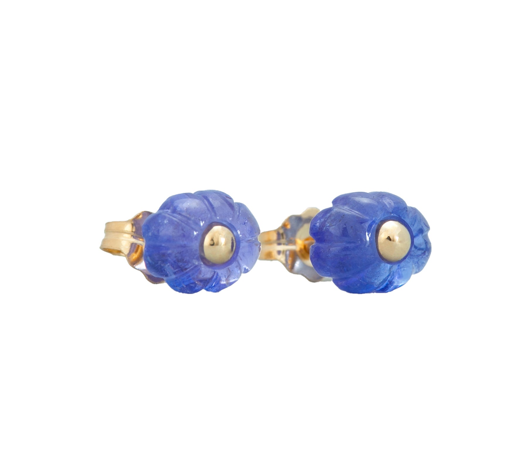 Carved Tanzanite Studs 14K Yellow Gold