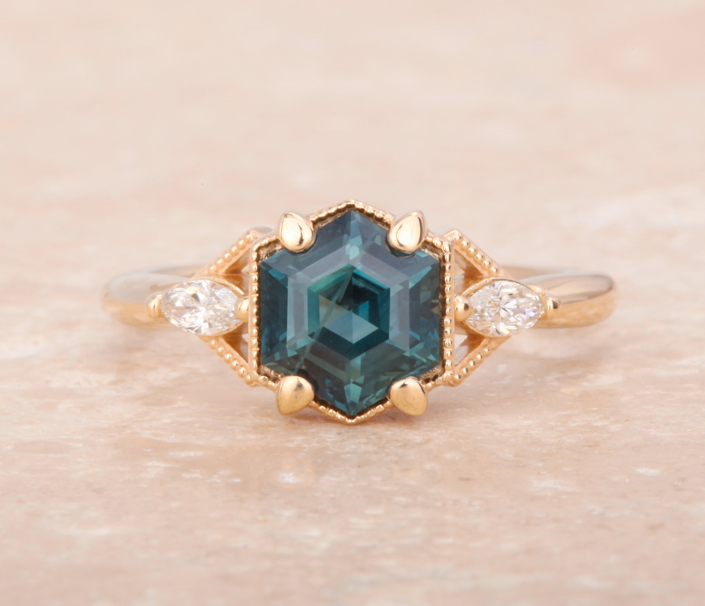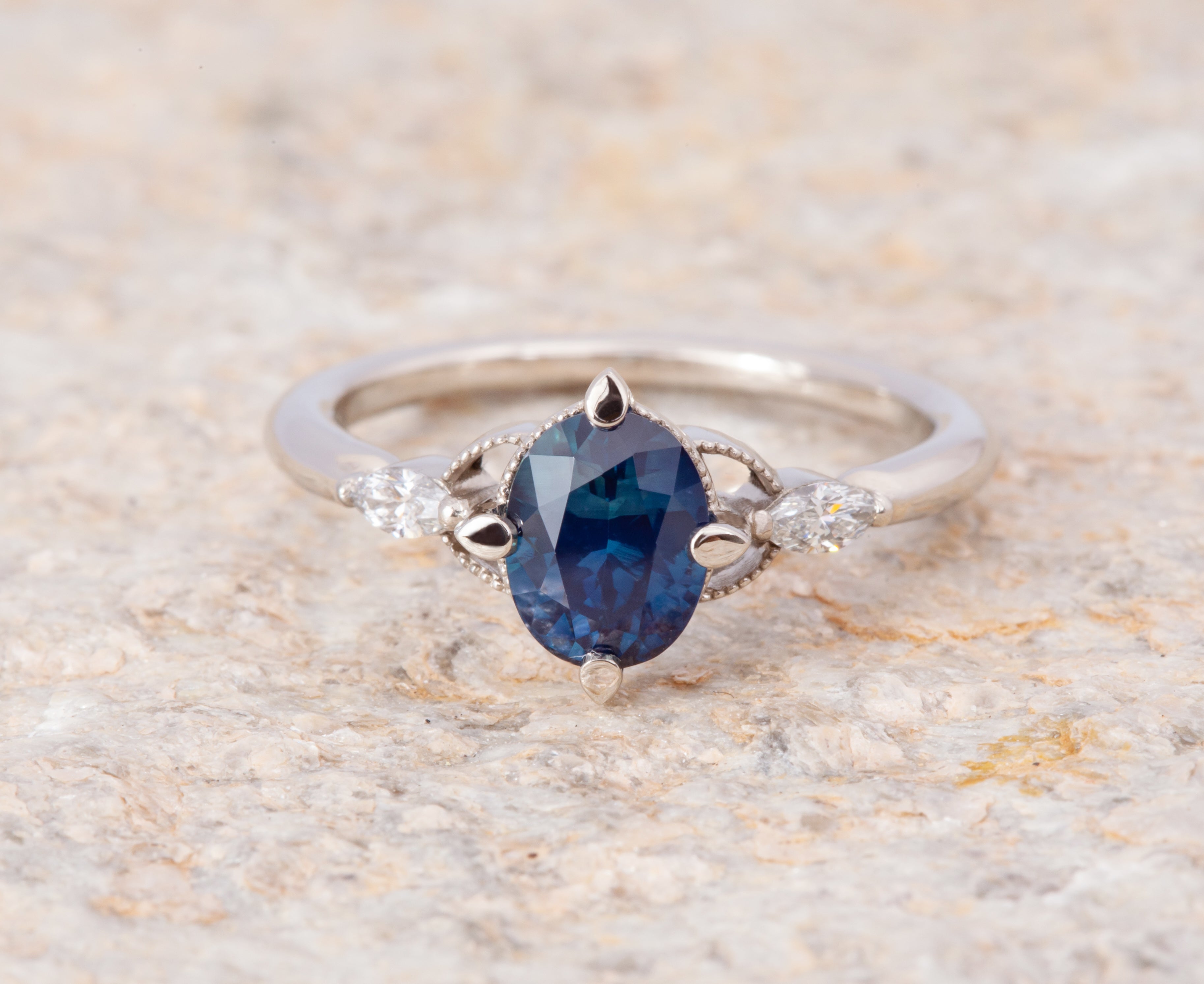 All stones are measured on a scale of hardness called the Mohs scale. Diamonds are a 10 - the hardest substance on earth, and a natural choice for engagement rings. Sapphires have a hardness of 9, and can easily stand up to a lifetime of wear. Sapphires also come in a rainbow of gorgeous colors and we source many unique cuts, so they are a favorite stone in our collection.