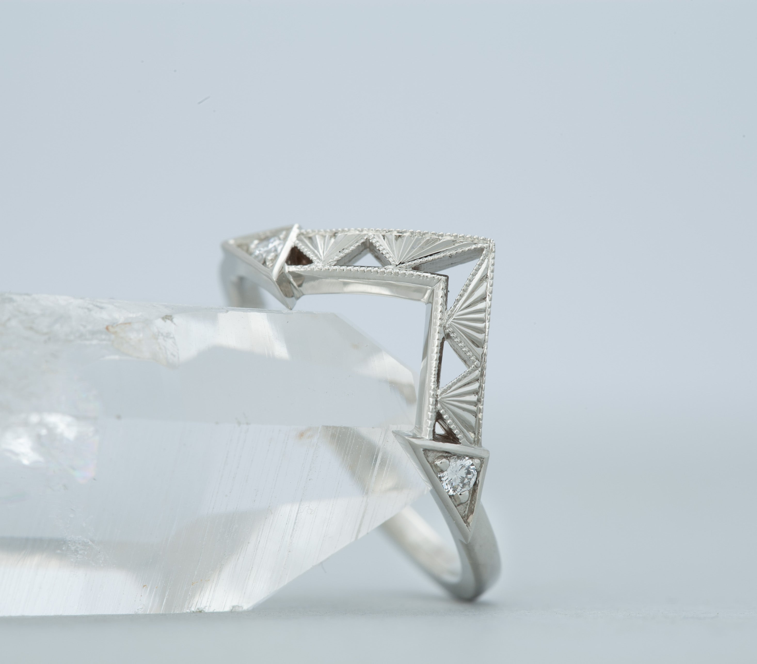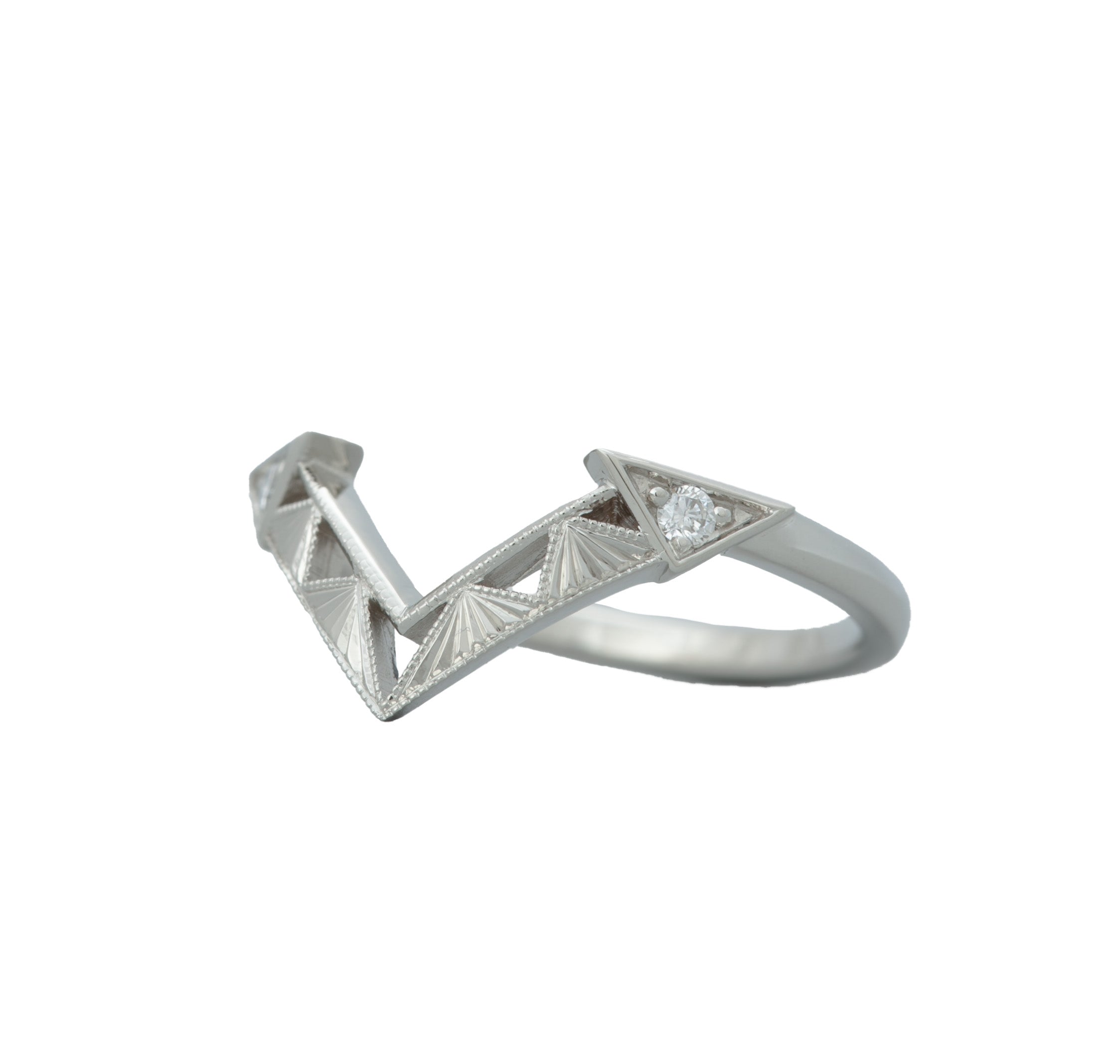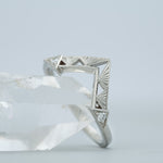 We painstakingly engrave this band to perfectly fit your ring. This engraved Starburst band was originally made to fit the Oberon ring, however, it will fit and look wonderful with many of our other designs. Please contact us to inquire if you have any questions about compatibility.
