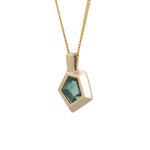 Geometric Portrait Cut Montana Sapphire Pendant 14K Yellow Gold