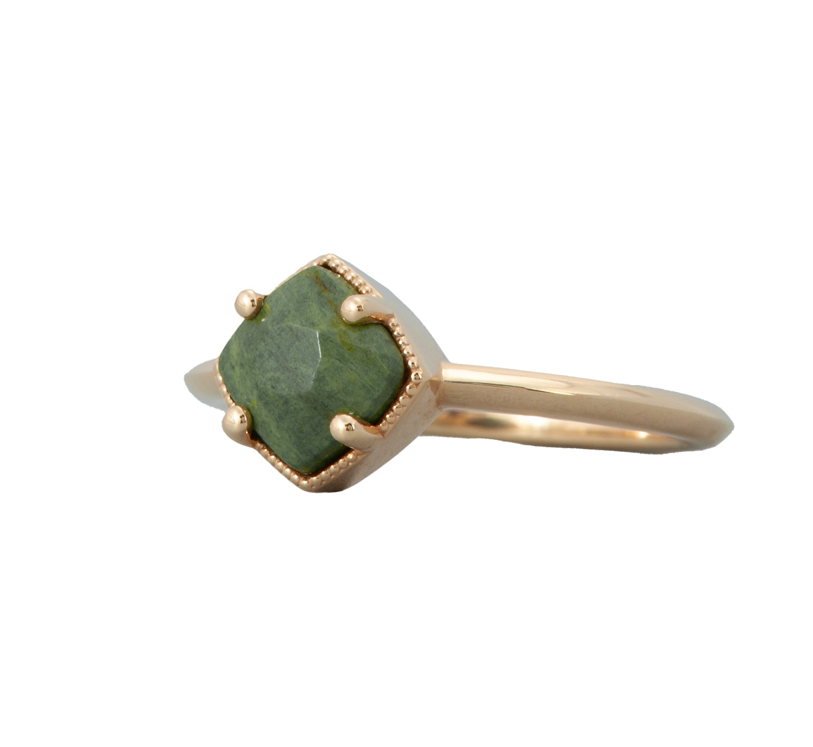 In collaboration with Leora Coronel. Locally sourced faceted stone from the Yuba river set in our Constance ring setting in 14K Yellow Gold.