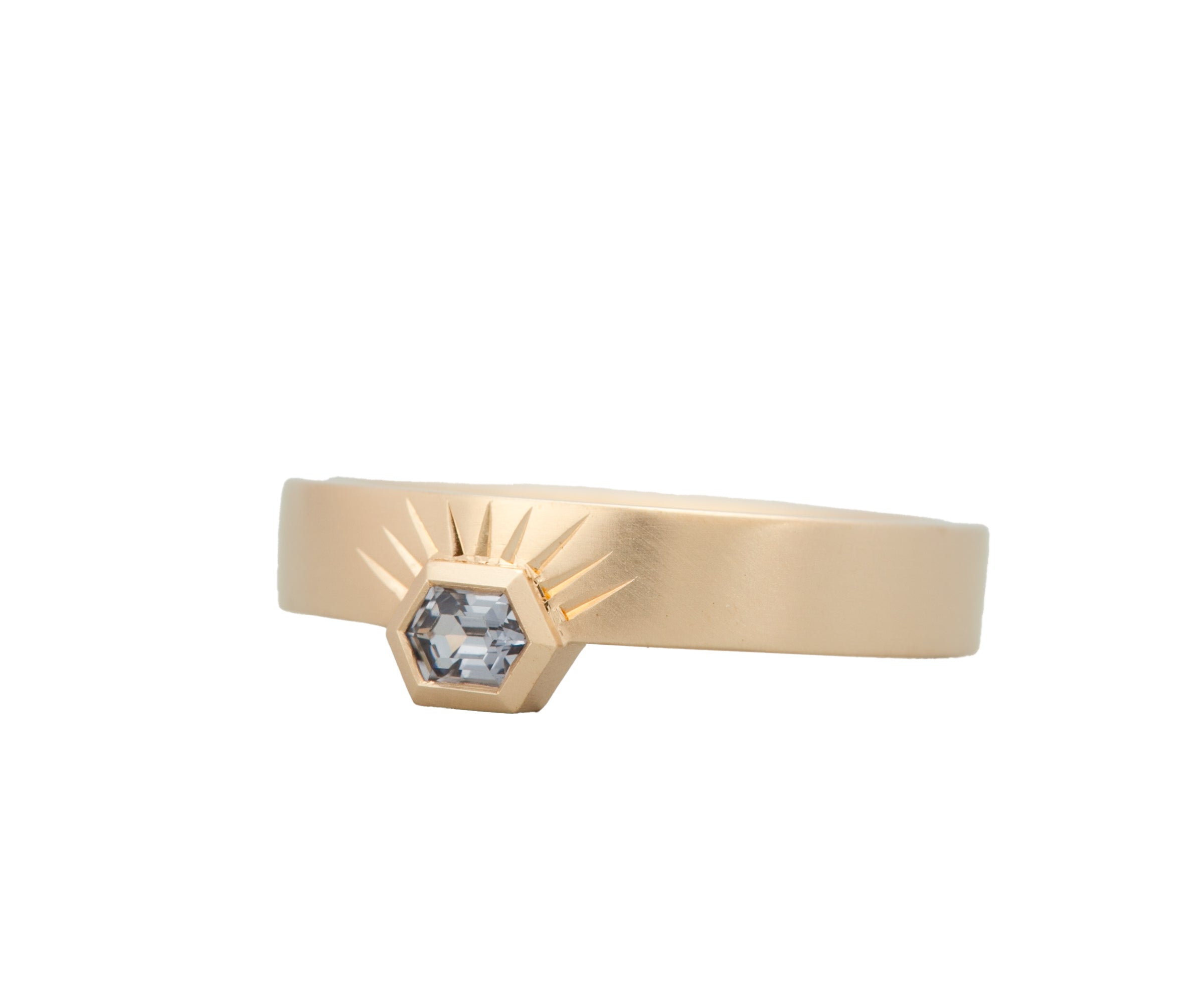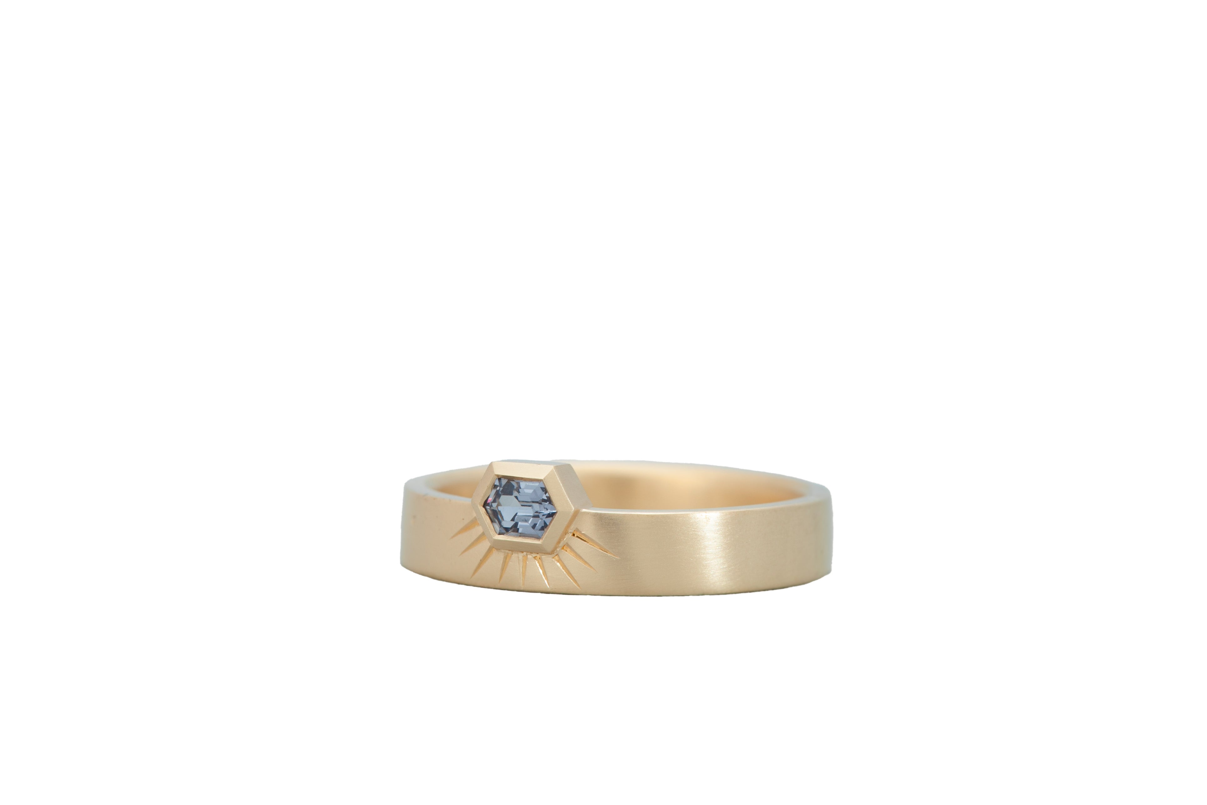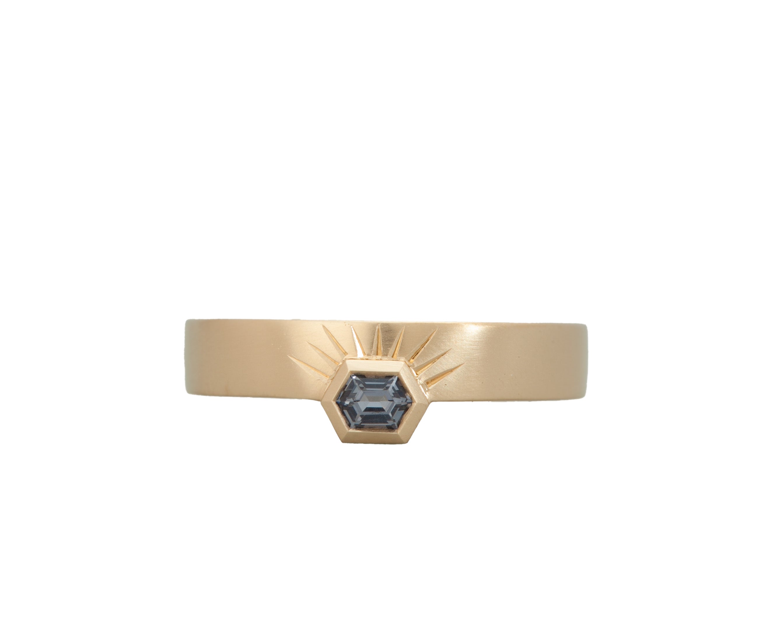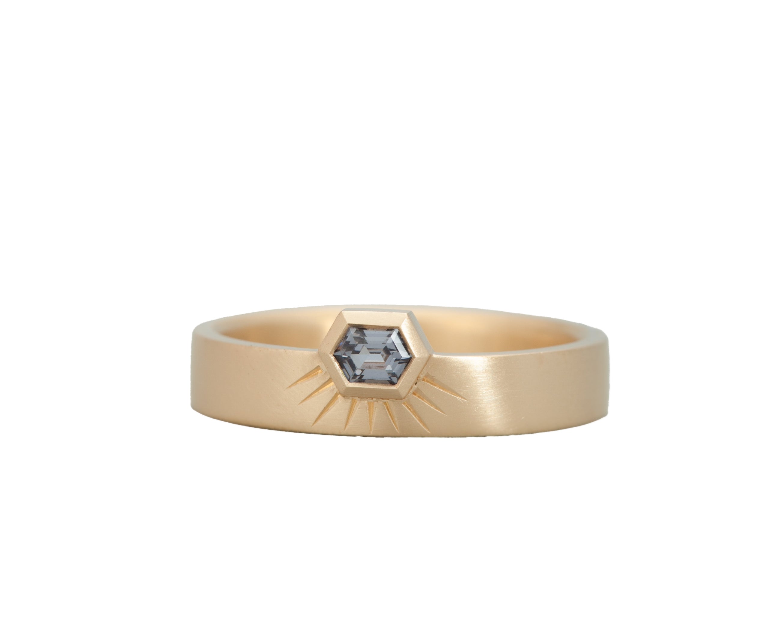 Grey Hexagon Spinel Engraved Riley Band 14K Yellow Gold