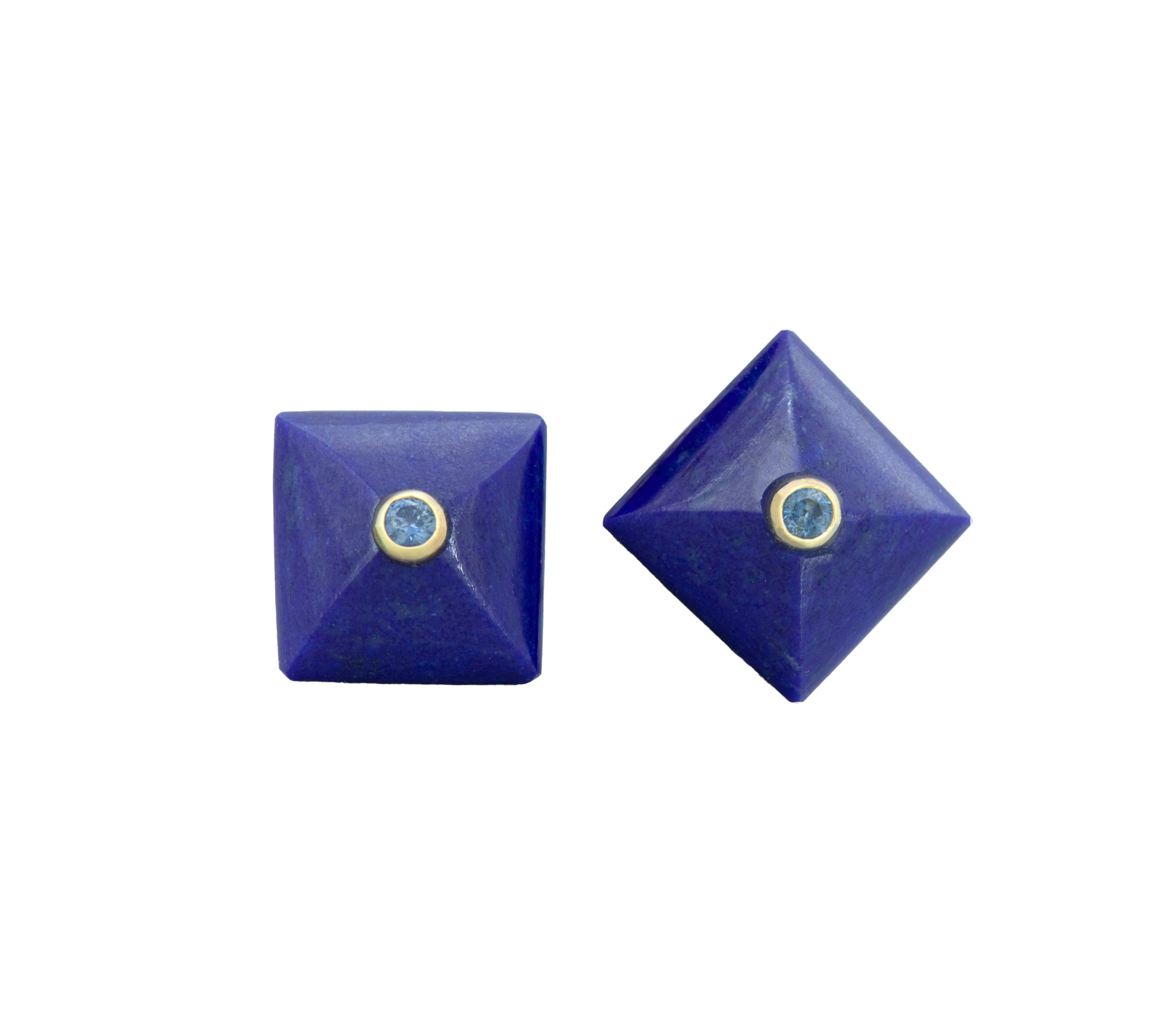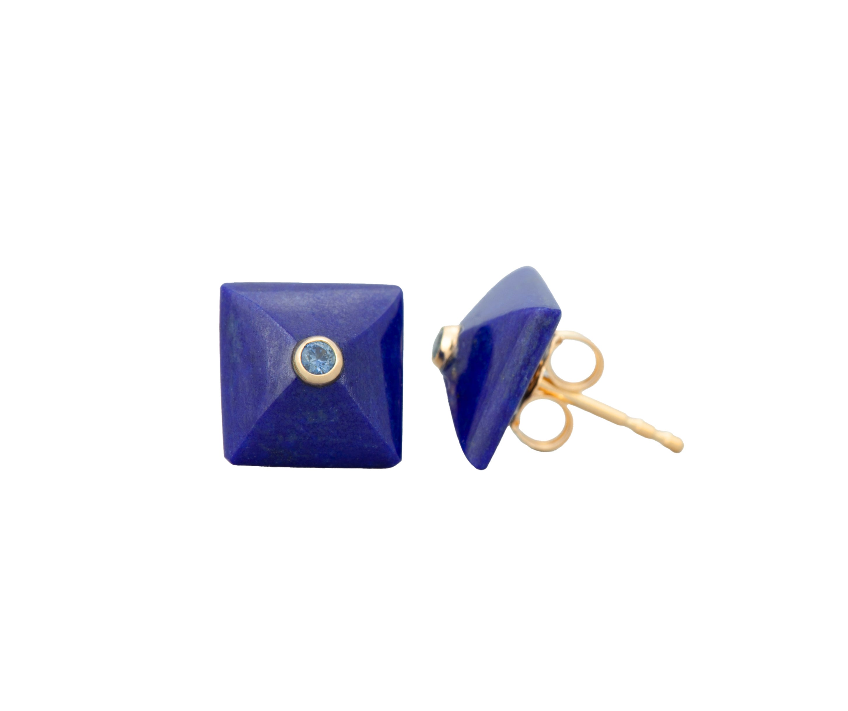 Lapis and Blue Sapphire Pyramid Studs 14K Yellow Gold