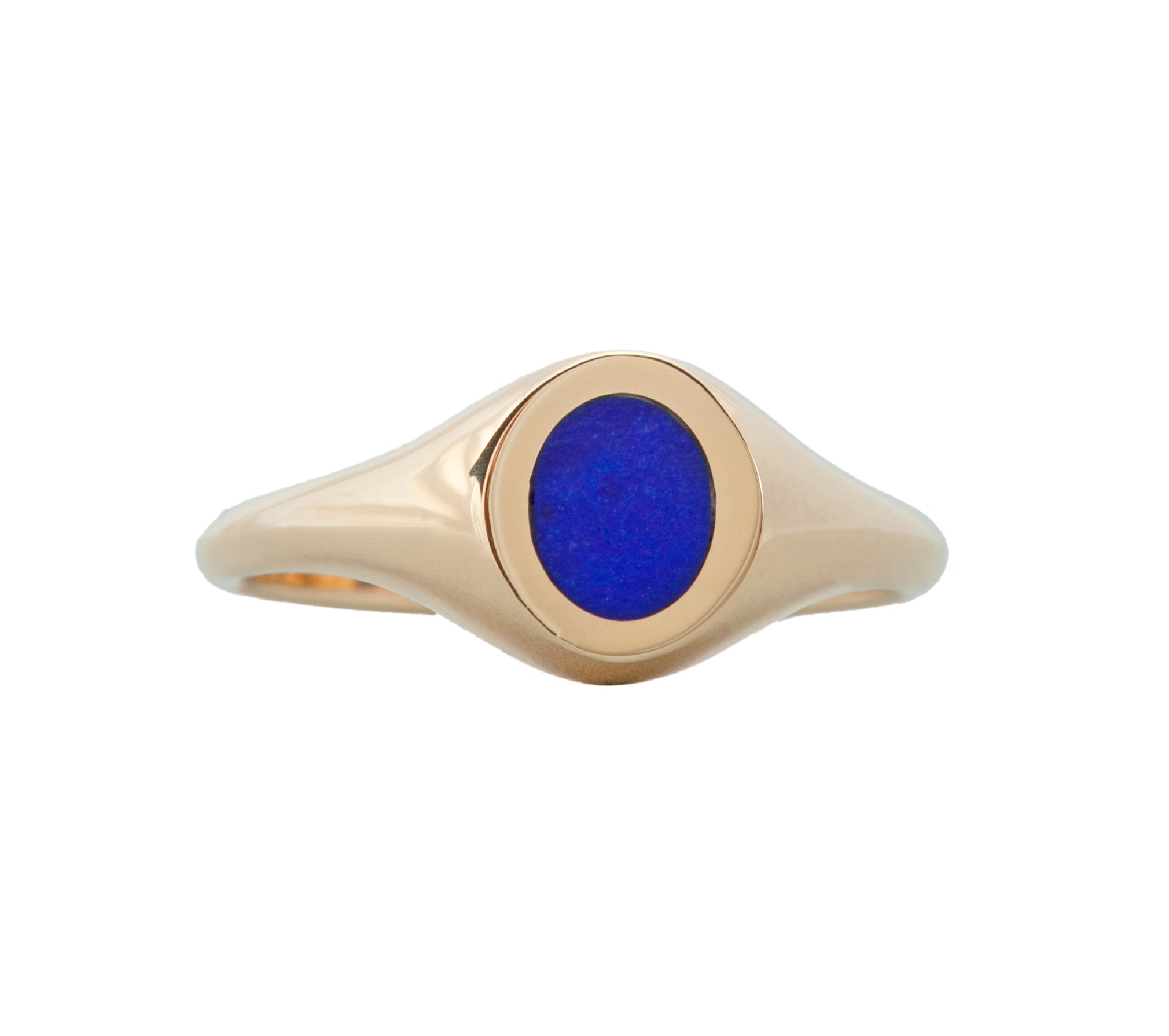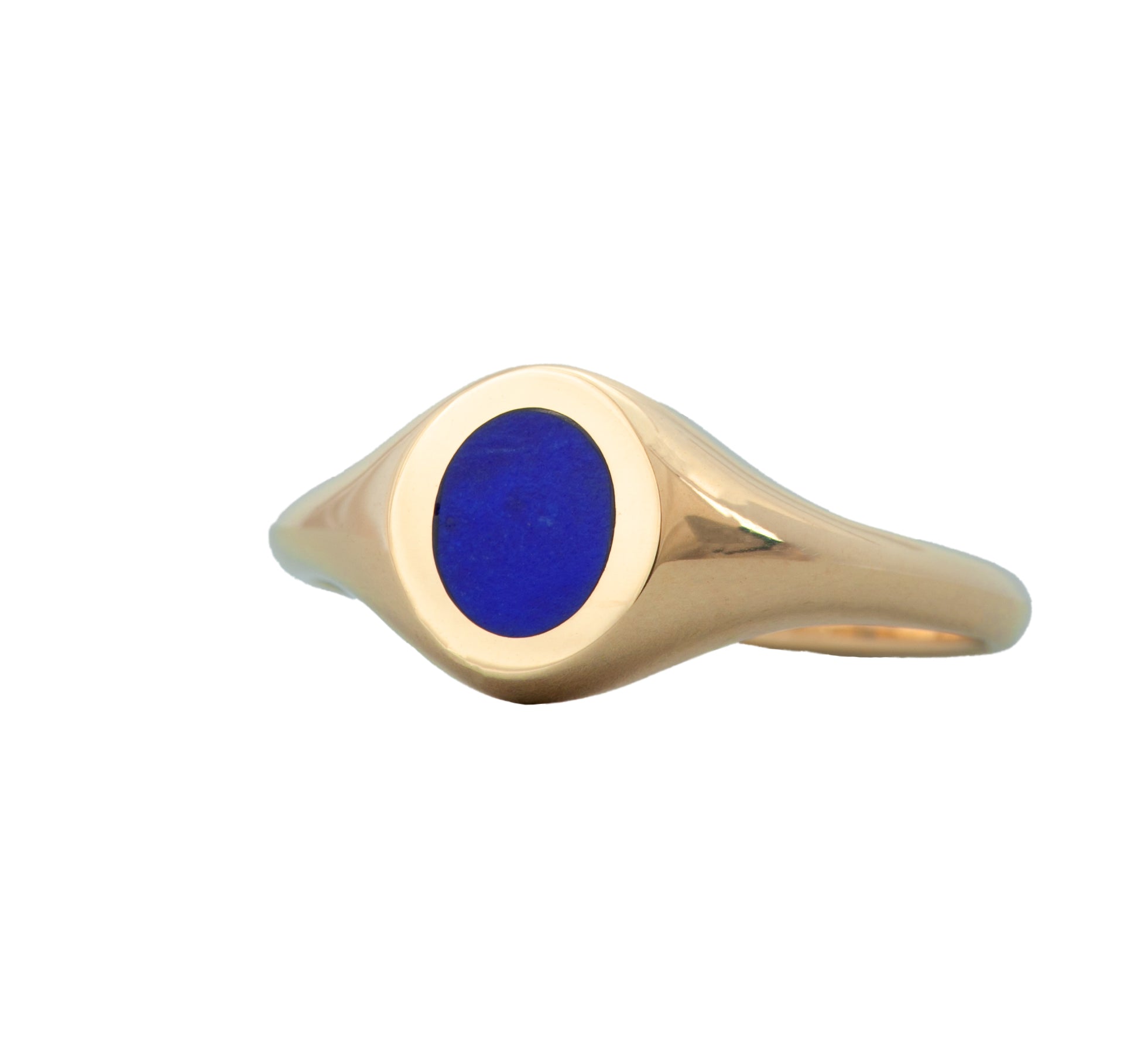 The baby version of our larger signets set in 14K yellow gold and lapis inlay cut in-house.