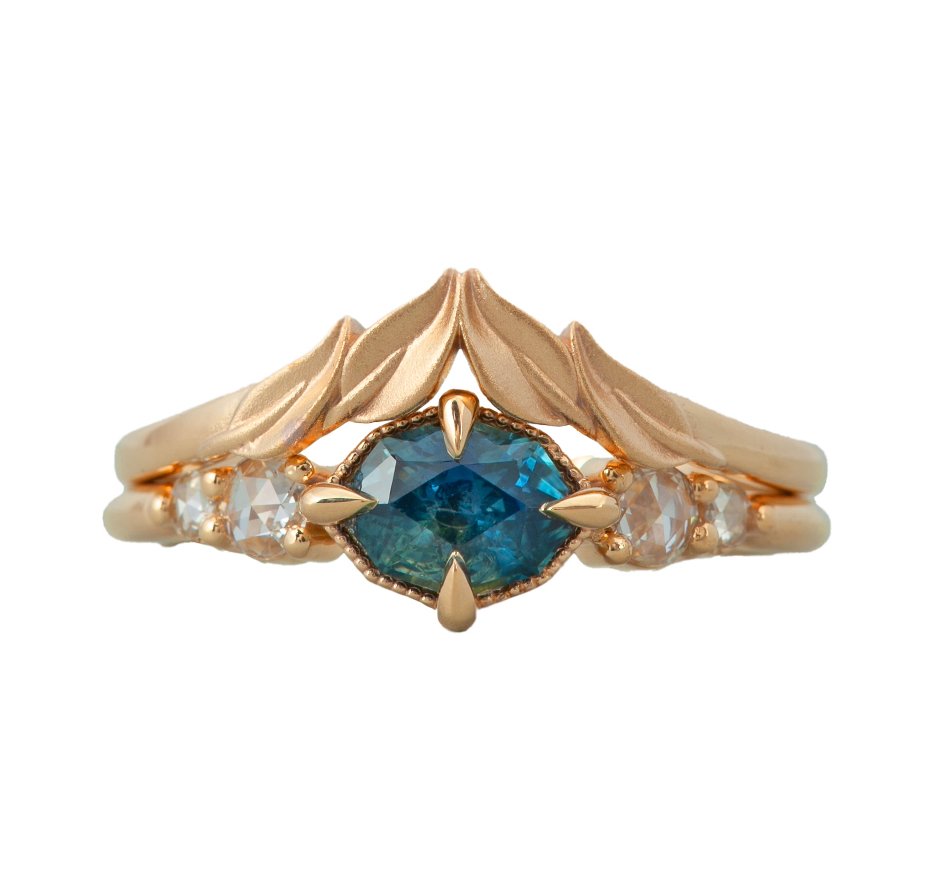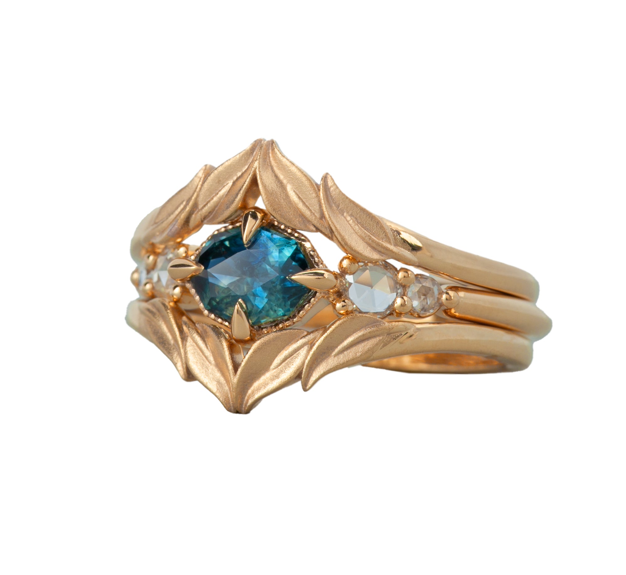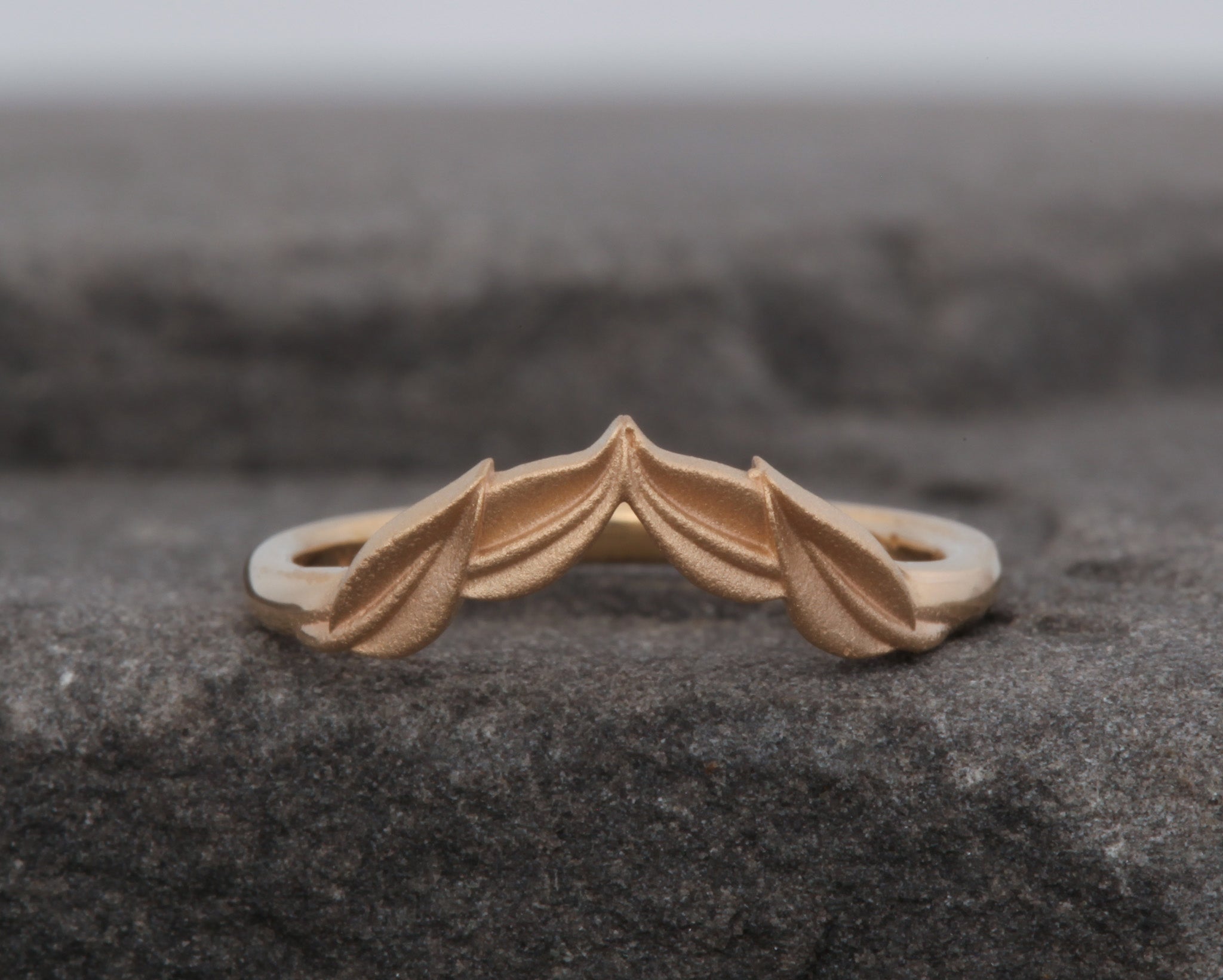 This is our Eminence matching band without a stone, which was requested by a client and we loved how it came out. Now we are offering it as an option for anyone looking for a matching band that stands out in its nature-inspired design. This band can be customized to fit nearly any of our settings, and can be made in 14k yellow gold, 14k white gold, 14k rose gold, or 18k yellow gold or platinum. Please reach out if you have any questions.