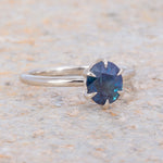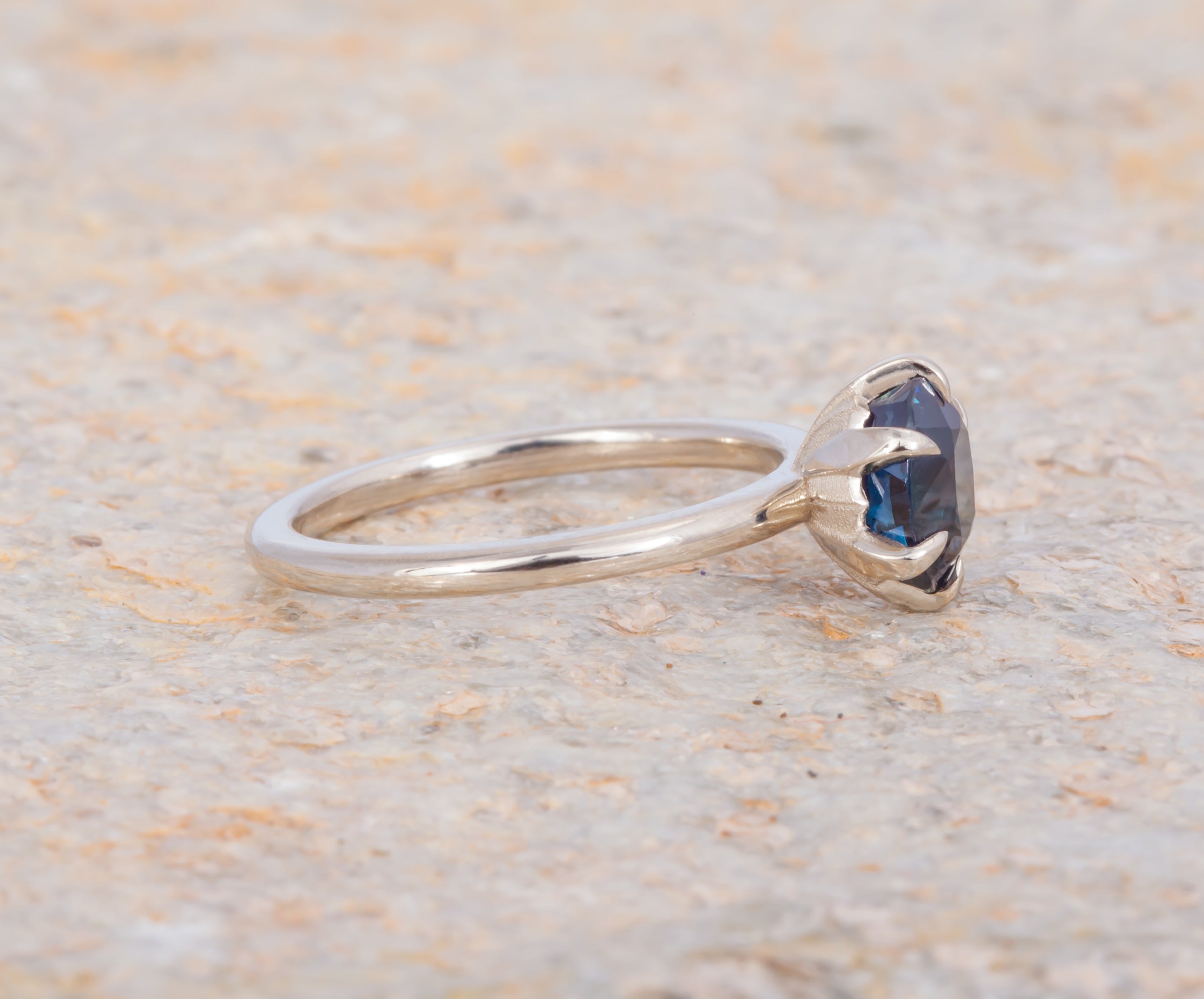 We wondered, how can one reinvent the wheel? How does one reinvent the solitaire? So we let intuition guide us to this simple but solid 6 prong solitaire with a subtle floral gallery. While looking through a book of local wildflowers we realized the setting has a serious likeness to morning glories, give it a google and see for yourself!