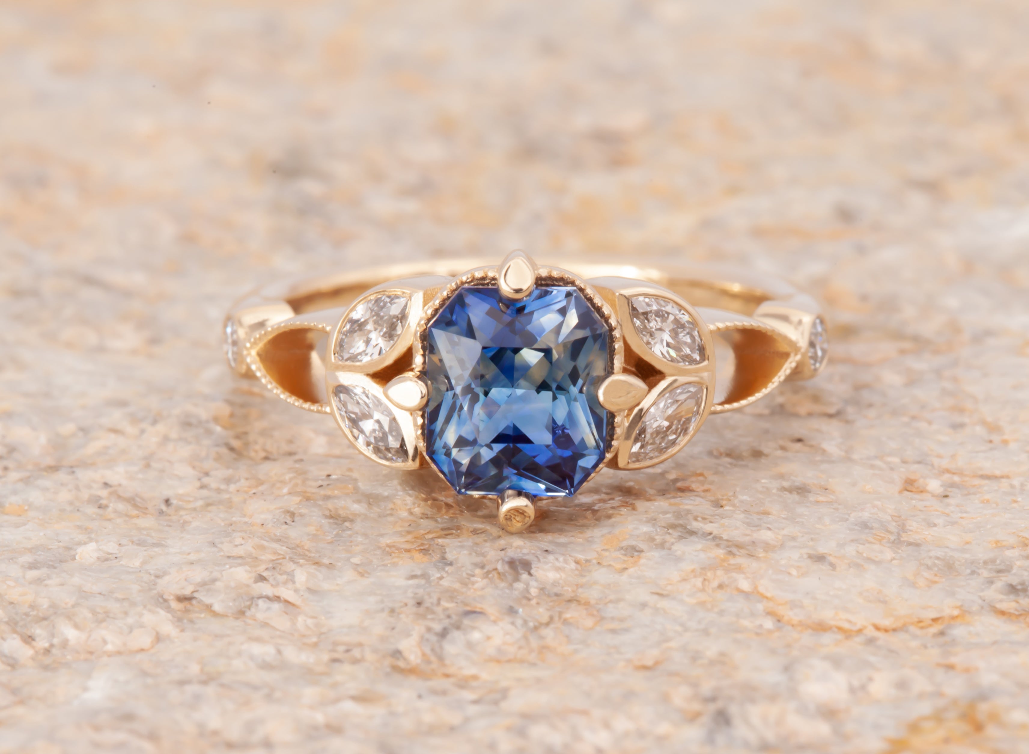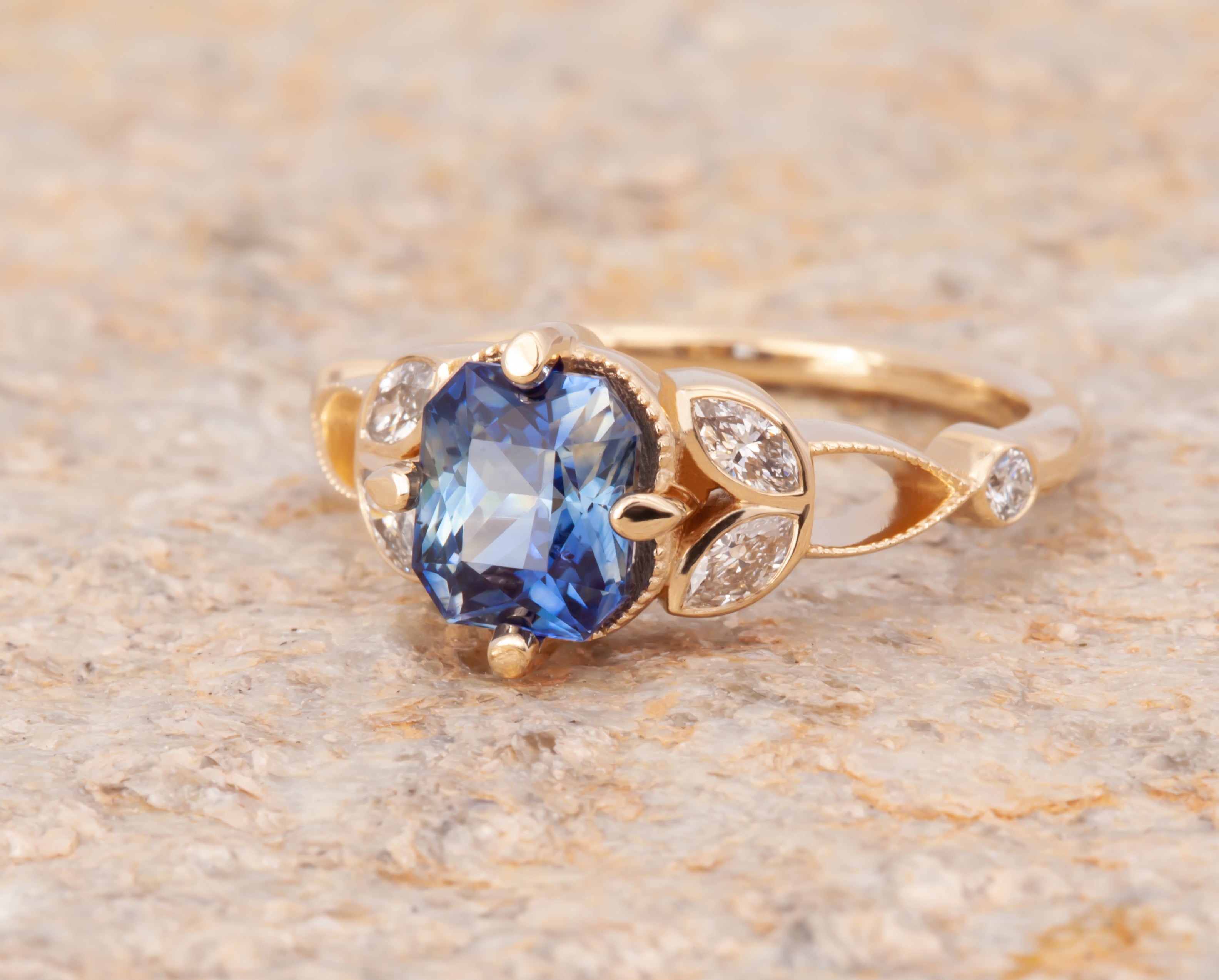 All stones are measured on a scale of hardness called the Mohs scale. Diamonds are a 10 - the hardest substance on earth, and a natural choice for engagement rings. Sapphires have a hardness of 9, and can easily stand up to a lifetime of wear. Sapphires also come in a rainbow of gorgeous colors and we source many unique cuts, so they are a favorite stone in our collection.