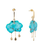 OOAK Turquoise Raincloud earrings 14k Yellow Gold