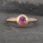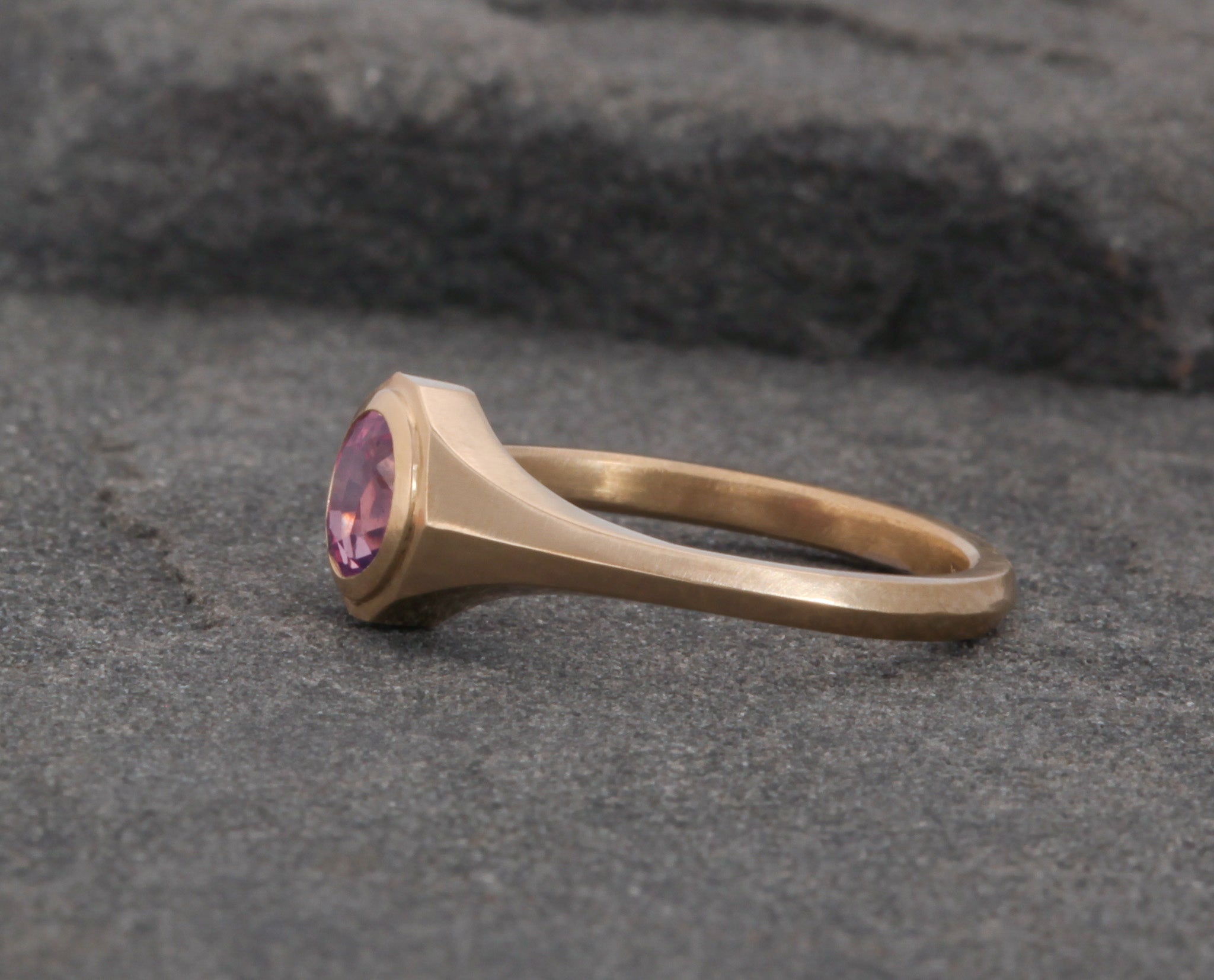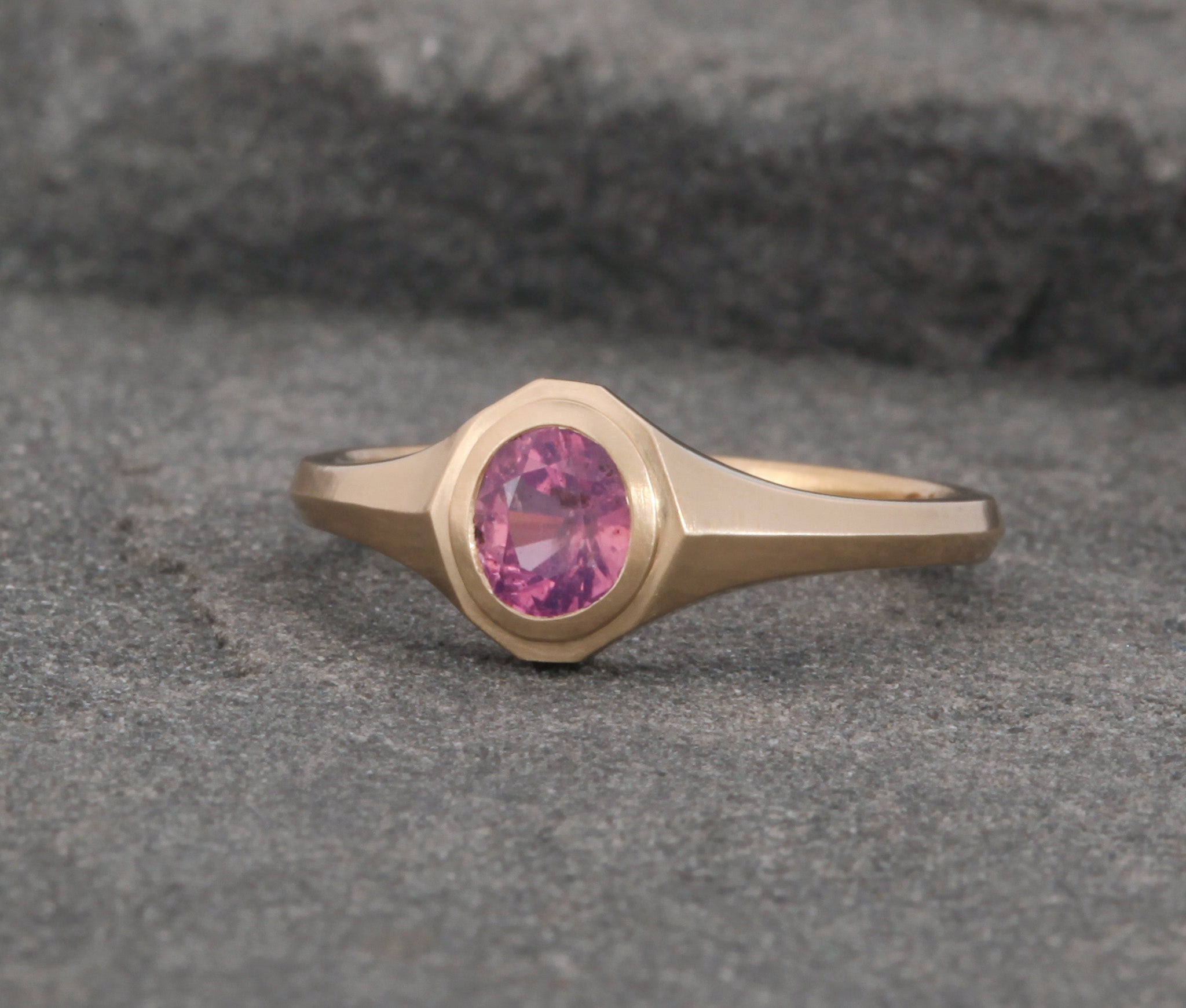 The Prudence Ring, named after one of Sarah's grandmothers, is an antique inspired setting that is at once elegant, simple, and striking. The ring features a bezel set stone of your choice and is best suited with smaller stones, 1ct or under. This classic style has a high polish finish which accentuates the timeless beauty, reminiscent of engagement and wedding rings from eras past.