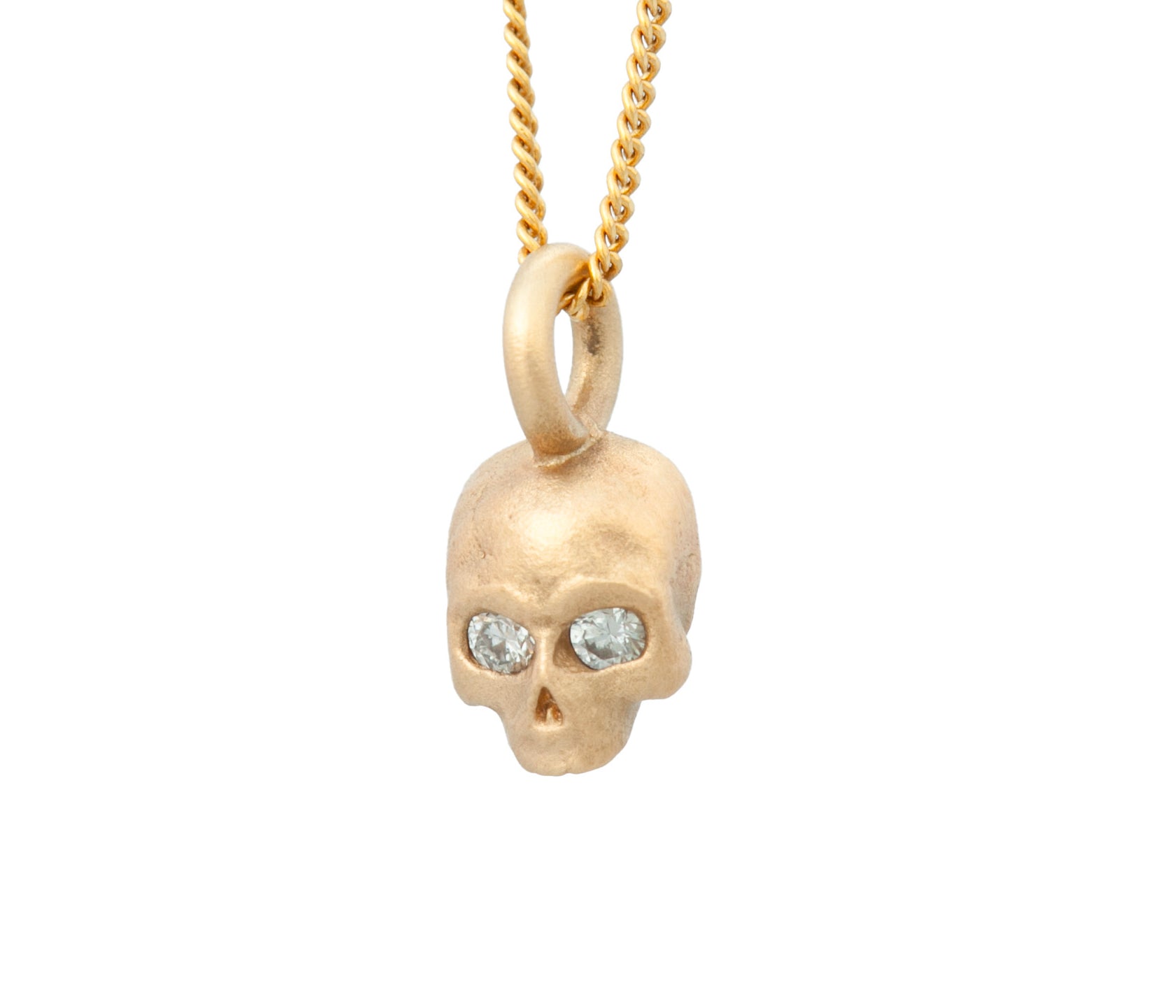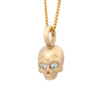 Small flat backed skull pendant in 14k Yellow Gold. Flat flat, measures 10 x 5mm Approximately 2 weeks lead time, please let us know if you need it sooner.