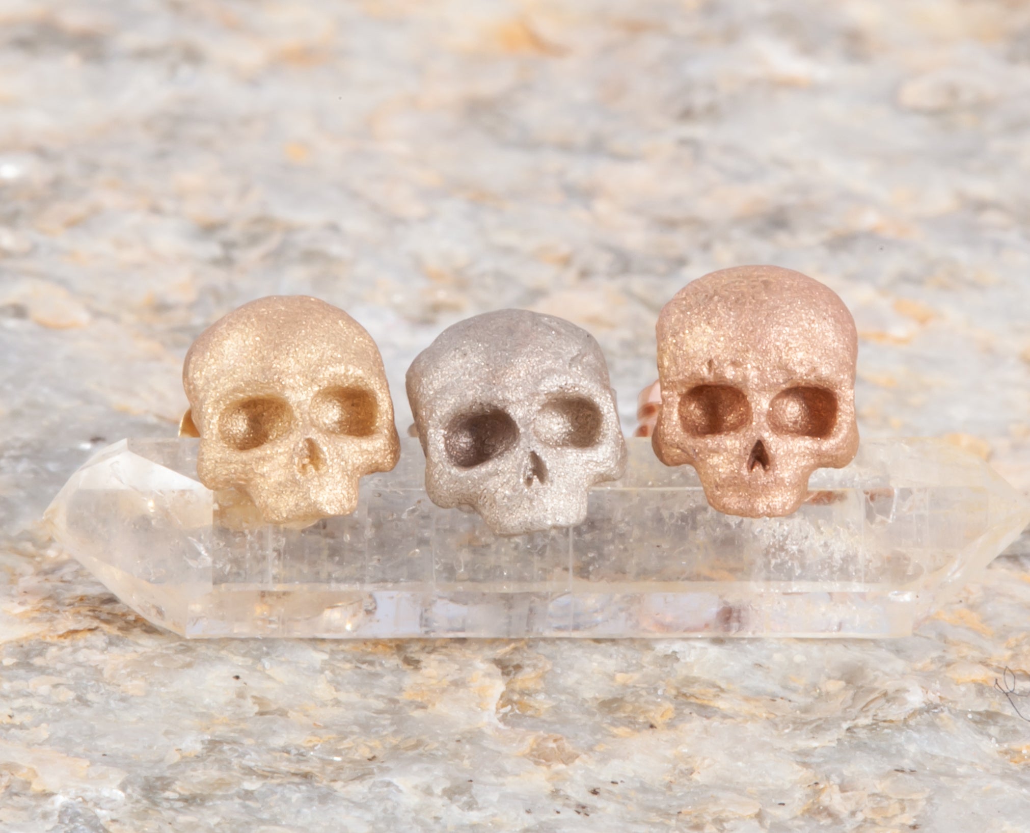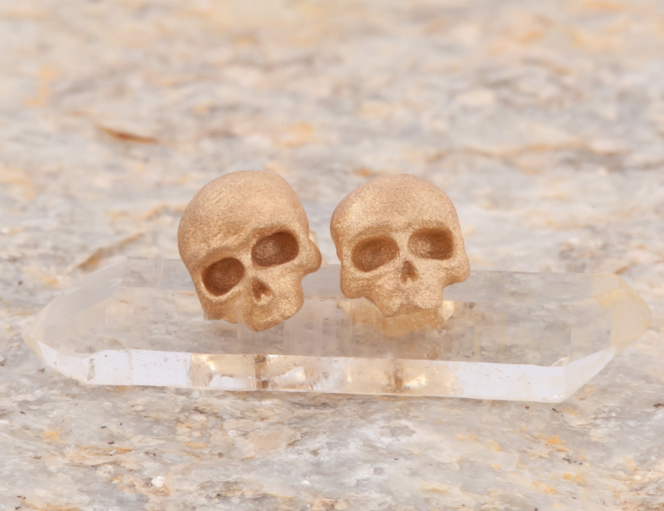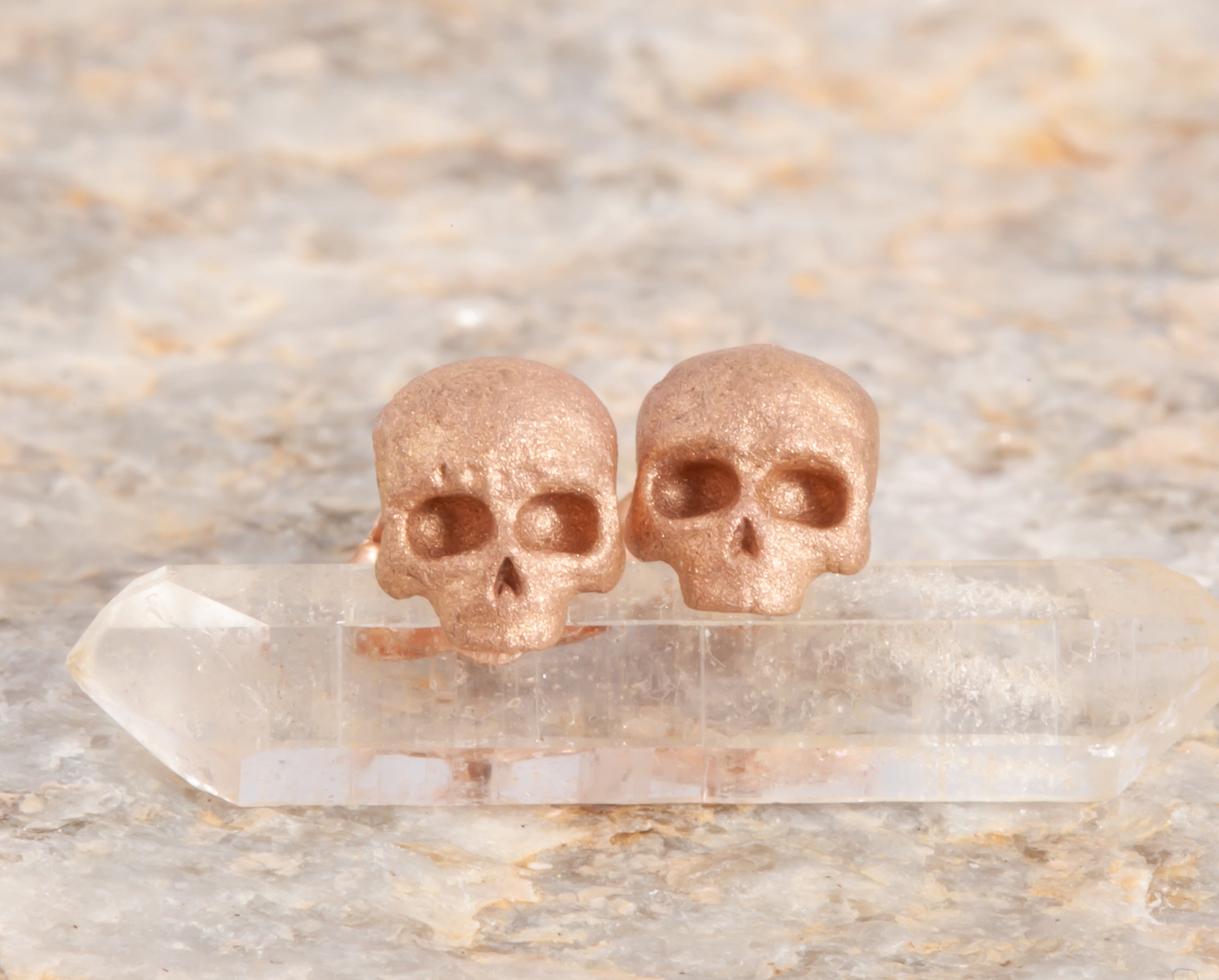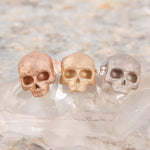 Our single skull stud earrings with a satin rough finish, buy one or get a pair! The skulls measure 6.10mm x 5.10mm each.