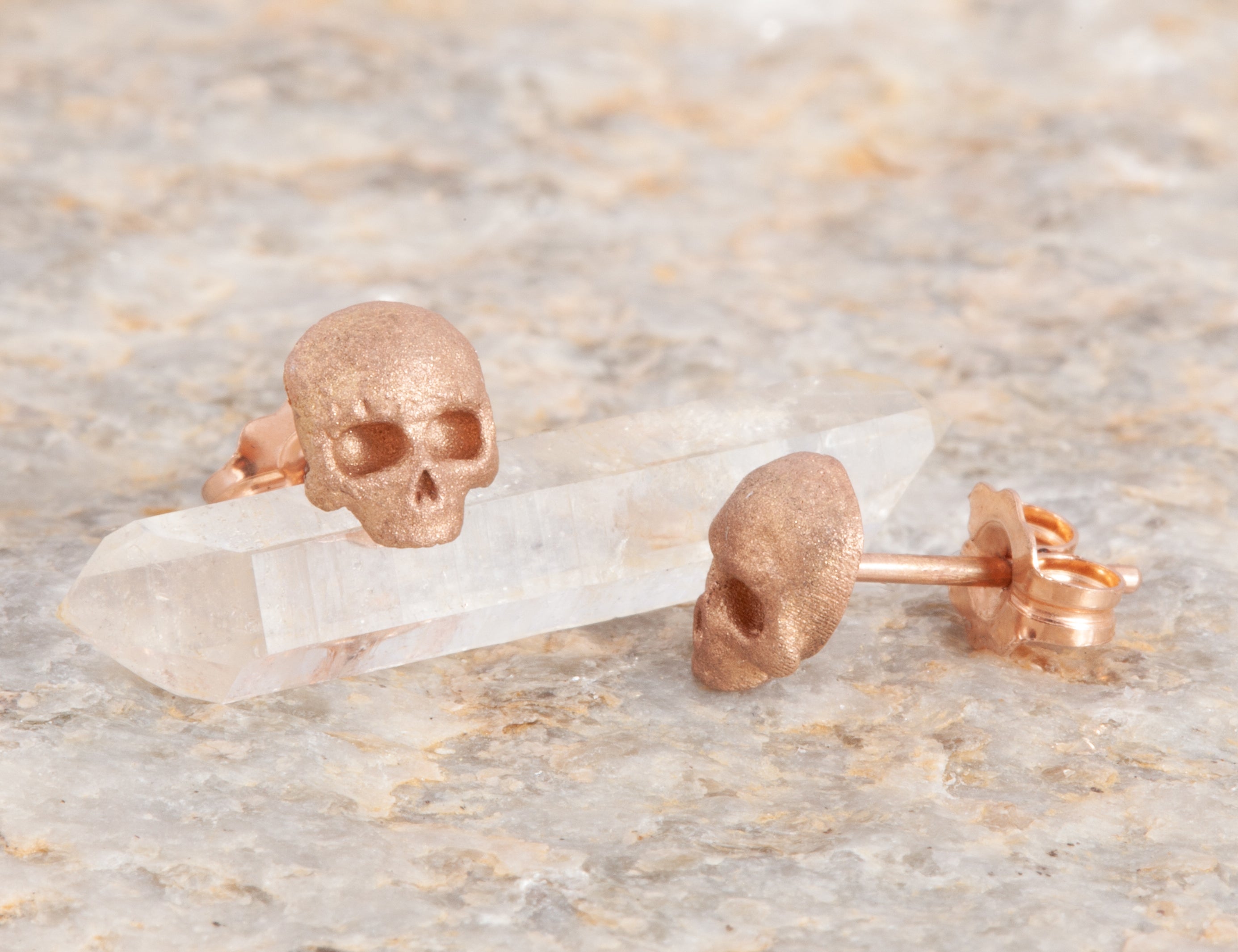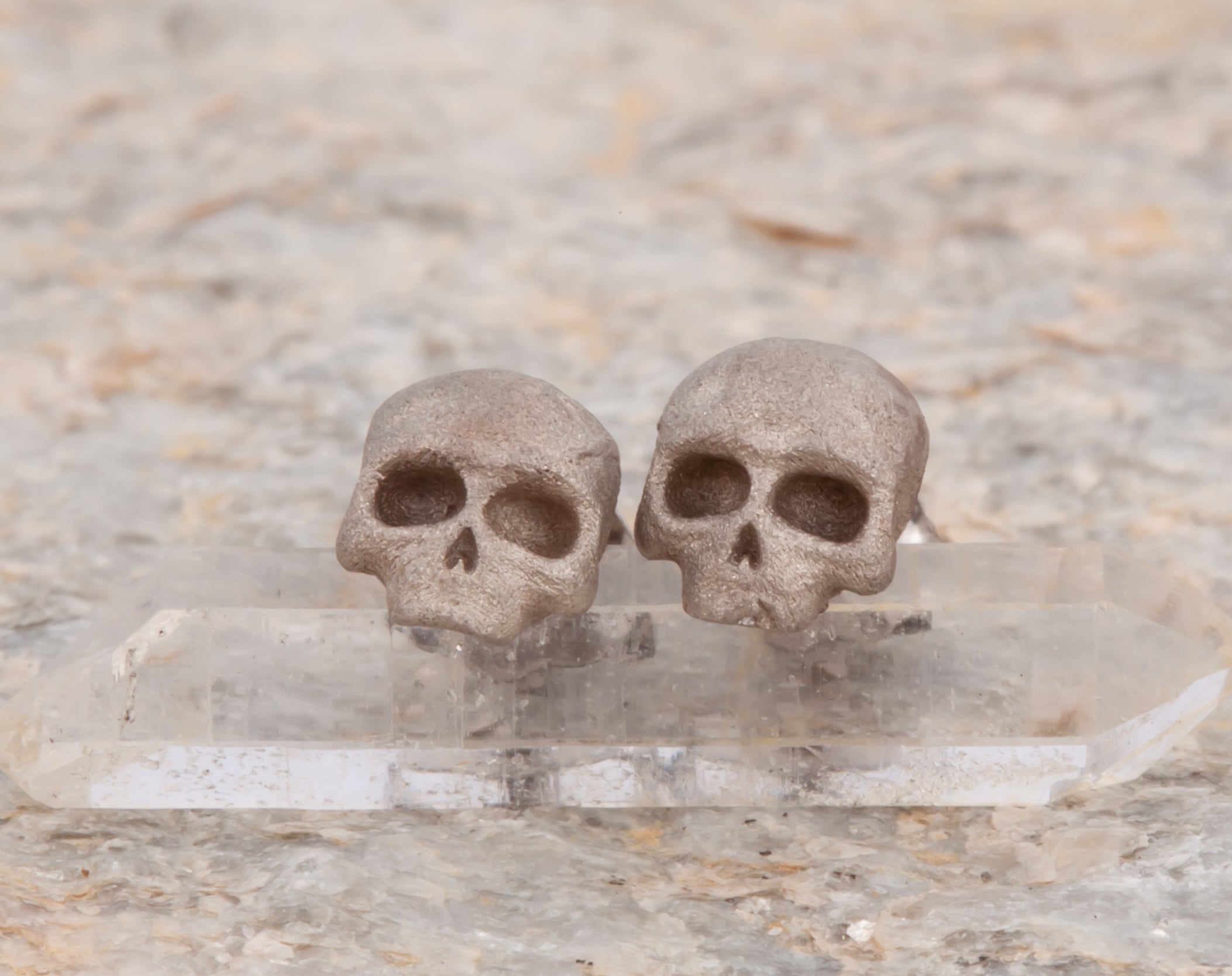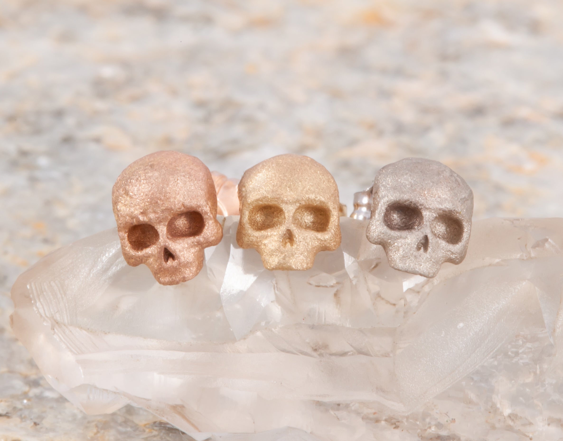 Our single skull stud earrings with a satin rough finish, buy one or get a pair! The skulls measure 6.10mm x 5.10mm each.