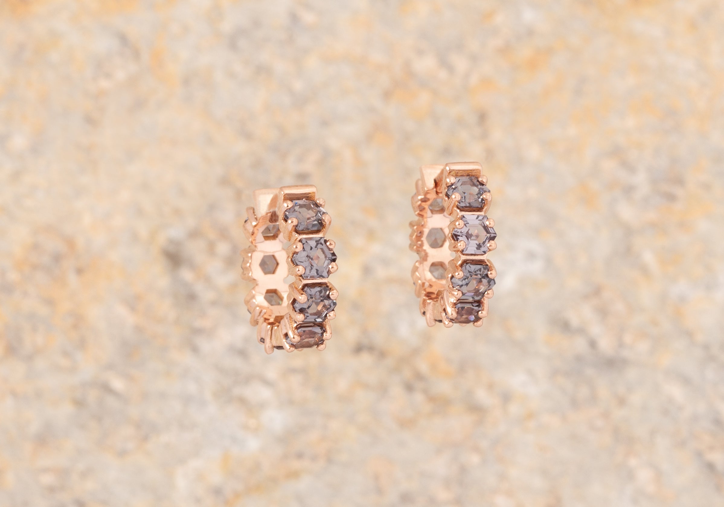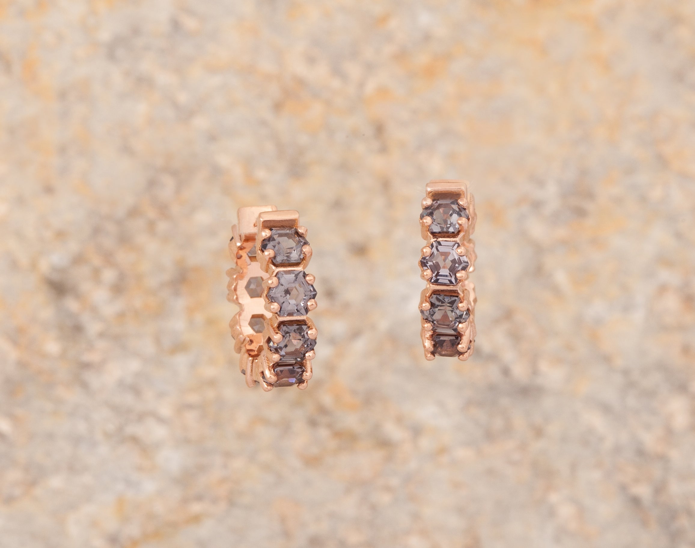 Just under 4cts in each pair. 14.5mm diameter with 3mm Hexagon spinels. Several options in the drop down menu but colors are limited. Please send an email with special requests or choose Special Request in the drop down menu